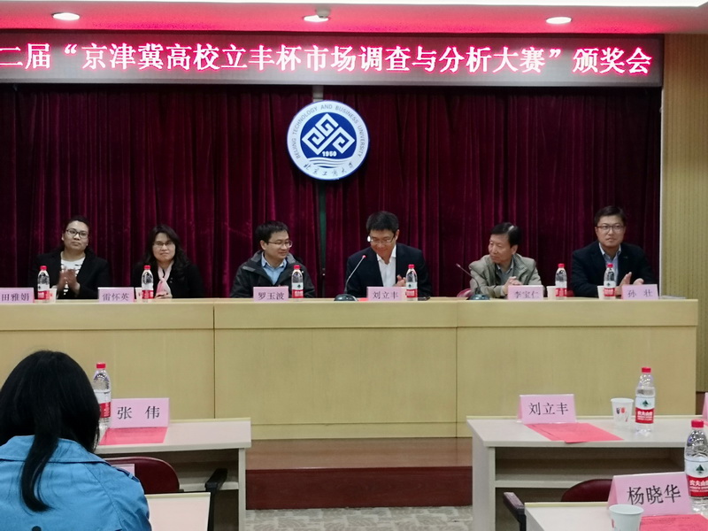 4月14日,第二屆京津冀高校立豐杯市場調(diào)查與分析大賽在我校阜成路校區(qū)舉辦。本次比賽由我校教務(wù)處、經(jīng)濟學院和北京益普索市場咨詢公司主辦,京津冀經(jīng)濟學學科協(xié)同創(chuàng)新聯(lián)盟協(xié)辦,經(jīng)濟學院統(tǒng)計系承辦。北京益普索市場咨詢有限公司劉立豐董事長、天津工業(yè)大學雷懷英教授、河北大學田雅娟副教授和我校經(jīng)濟學院副院長張偉、羅玉波,教務(wù)處孫壯等嘉賓出席,并分別擔任本次大賽總決賽的答辯評審專家和頒獎嘉賓,參會師生近百余人。大賽的頒獎環(huán)節(jié)由張偉主持。