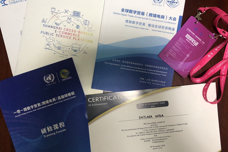 11月6日至9日,我校商學(xué)院碩士留學(xué)生斯維特拉娜(SVITLANA KUTIA)和斯蒂芬(NZIENGUI MOUBAMBA GERAUD STEPHANE)經(jīng)過層層選拔,從500名候選人中脫穎而出,代表我校與其他13名從清華等高校選拔出來的留學(xué)生一起,參加了的全球數(shù)字貿(mào)易(跨境電商)大會和一帶一路數(shù)字貿(mào)易(跨境電商)高級研修班。