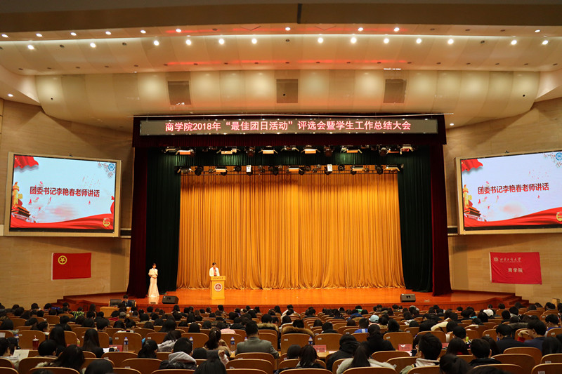 臨近歲末,為總結(jié)經(jīng)驗,規(guī)劃好來年工作,本著“公開透明,學(xué)習(xí)交流,接受監(jiān)督”的原則,12月26日下午,商學(xué)院在良鄉(xiāng)校區(qū)舉辦2018年“最佳團日活動”評選會暨學(xué)生工作總結(jié)大會。商學(xué)院黨委副書記樊江濤、團委書記李艷春以及全體輔導(dǎo)員、黨團學(xué)青組織負(fù)責(zé)人、班團干部等600余人參加了大會。