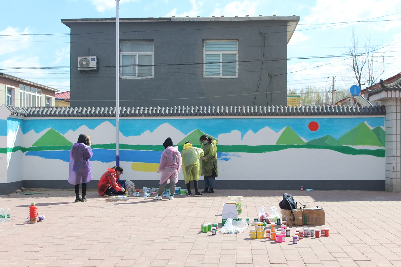 “在本次墻繪實(shí)踐活動(dòng)中,我感受到了藝傳學(xué)子在新時(shí)代背景下展現(xiàn)出的新風(fēng)貌,特別感謝同學(xué)們不畏艱苦,在大風(fēng)夾雜著沙塵無情呼嘯的天氣下順利完成了墻繪。二站村文化廣場(chǎng)原本的白墻,在藝傳學(xué)子的妙筆下變成了綠水青山的畫卷。”周國強(qiáng)說道。