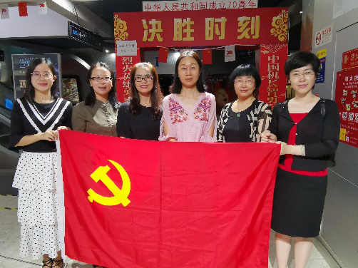 近期,為慶祝中華人民共和國成立70周年,推進“不忘初心、牢記使命”主題教育活動,弘揚愛國主義精神,藝術與傳媒學院黨委組織學院廣告、中文、新聞、數媒、設計等教工黨支部的黨員教師們集體觀看電影《決勝時刻》。