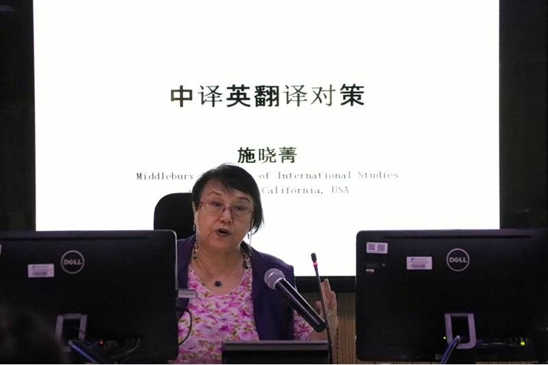 10月22日,美國蒙特雷國際研究學院(MIIS)高級翻譯學院副教授、國際會議口譯員協會(AIIC)會員及亞太區主管、聯合國資深同傳譯員、AIIC會員、中國外文局教育培訓中心顧問施曉菁教授應邀來外國語學院舉辦題為“中譯英翻譯對策”的講座。外國語學院院長劉紅艷,學院研究生和本科生參加了本次講座。本次講座由劉院長主持。
