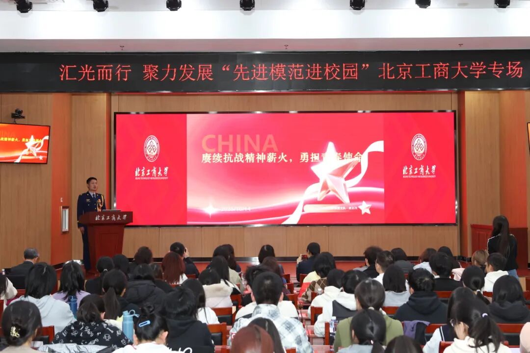 10月22日,由共青團北京市委員會、北京市人力資源和社會保障局、北京市退役軍人事務局聯合主辦的匯光而行·聚力發展“先進模范進校園”北京工商大學專場活動圓滿舉行。本次活動以“傳承和弘揚偉大抗戰精神,踐行新時代青年擔當”為主題,特邀全國模范退役軍人、門頭溝區齋堂消防救援站副站長黃志川,北京市優秀退役軍人、北京司雷植??萍加邢薰径麻L萬佳,與師生面對面交流。他們以自身的奮斗經歷,為青年學子樹立榜樣、指引方向,激勵廣大學子在新征程中勇擔使命、奮發作為。