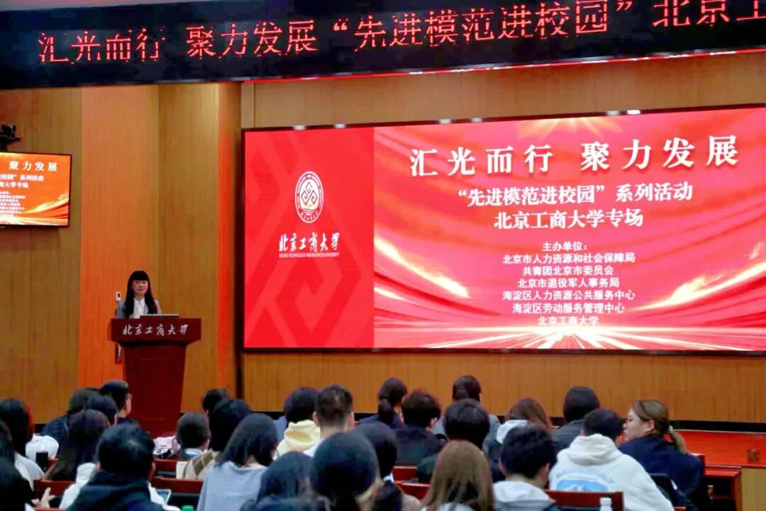 北京市人力資源和社會保障局表彰任免處處長馬佳艷、副處長張睿,團市委組織部副部長賈薇、大學部副部長王若冰,北京市退役軍人事務局思想政治和權益維護處副處長夏紀偉,海淀區人力資源公共服務中心和勞動服務管理中心相關負責人,北京工商大學學生處副處長曹璐婷,招生就業處副處長劉晶出席本次報告會,報告會由校團委書記單紫薇主持。