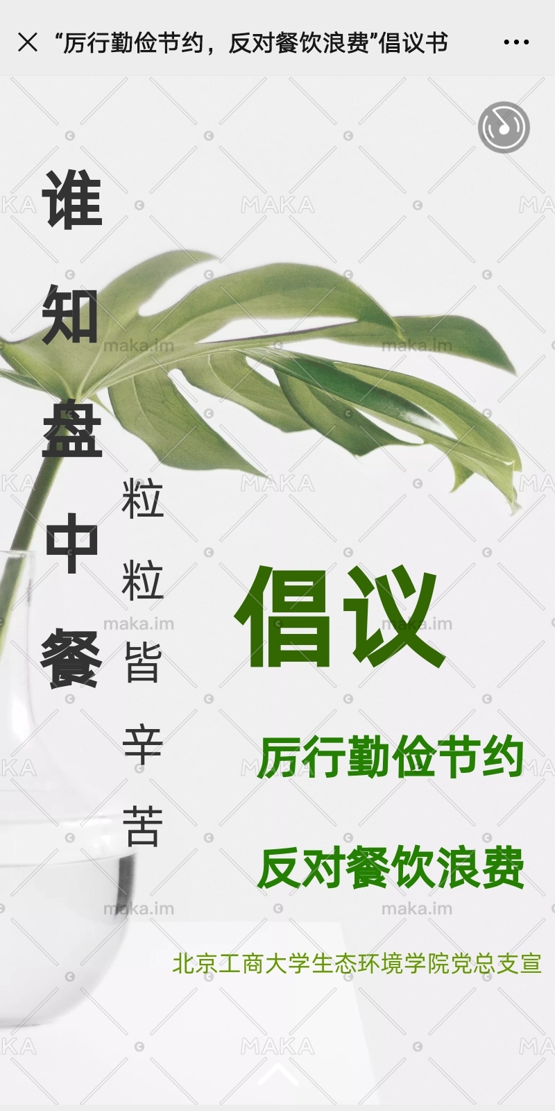 環(huán)境192班的同學(xué)在班主任賈璇老師的帶領(lǐng)下,將習(xí)近平總書記關(guān)于制止餐飲浪費(fèi)行為的重要指示精神與本專業(yè)相結(jié)合,倡導(dǎo)文明風(fēng)尚。同學(xué)們在班會中總結(jié)出“節(jié)約習(xí)慣的養(yǎng)成離不開學(xué)校教育”,要在學(xué)校范圍營造“浪費(fèi)可恥、節(jié)約為榮”的氛圍,將節(jié)儉風(fēng)尚潛移默化地融入日常生活中去。