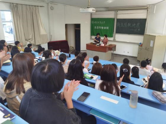 迎新會后,姚志良教授為同學們講授院長第一課。他向同學們介紹了我校和生態環境學院的歷史以及自己的人生經歷,并叮囑新生們:新時代青年人,要有夢想,敢奮斗,直面挫折,不畏挑戰,書寫時代篇章。