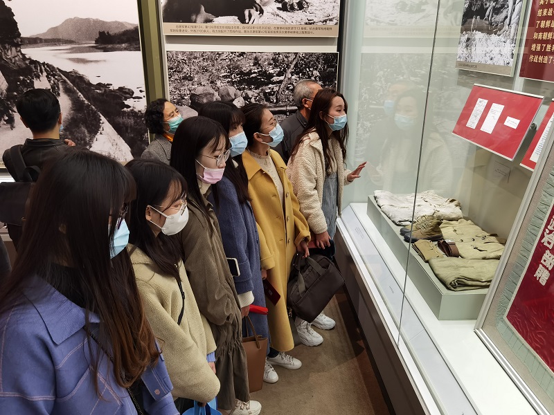 在展廳外,師生佩戴黨徽、展開黨旗,懷著莊重敬仰的心情合影留念。在講解員帶領下,大家依次觀看了“正義擔當,決策出兵”“運動殲敵,穩定戰線” “以打促談,越戰越強”“實現停戰,順利歸國”“抗美援朝戰爭勝利的偉大意義和歷史貢獻”5個部分的展覽,觀看了“中國人民志愿軍思想政治工作”“后勤保障工作”“偉大的抗美援朝運動”“最可愛的人”“不忘初心,牢記使命,永遠奮斗”5個專題展覽,還觀看了博物館其他革命歷史和文物展覽。