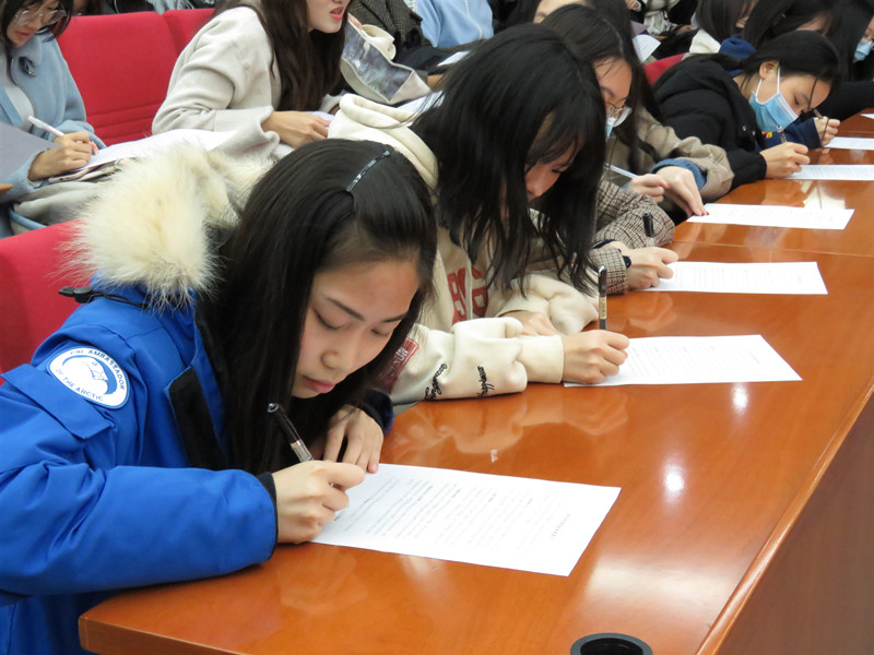 會上,經濟學院輔導員路京明宣讀《關于2020年度經濟學院黨員宿舍和黨員床位掛牌的決定》。各位黨員在“學生黨員聯系宿舍承諾書”上簽字,承諾充分發揮學生黨員的先鋒模范作用。馬靈清代表我院學生黨員發言,她表示要堅定共產主義理想信念;明確自身職責,加強服務群眾的能力;做表率,樹先鋒,用實際行動擦亮黨員先鋒底色。向小平和尹皓霙倢兩位老師向各支部學生黨員代表發放黨員宿舍掛牌。各位黨員、預備黨員重溫入黨誓詞,一句句錚錚誓言,表達了自己不忘初心跟黨走的決心。
