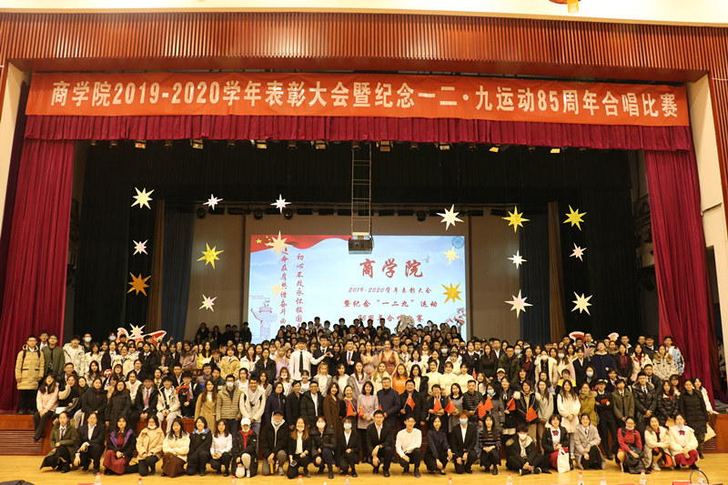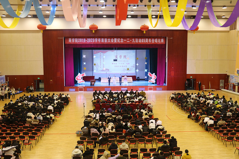 為弘揚(yáng)愛(ài)國(guó)精神,增強(qiáng)班級(jí)凝聚力,豐富校園文化生活,12月6日,商學(xué)院在良鄉(xiāng)校區(qū)舉辦2019-2020學(xué)年表彰大會(huì)暨紀(jì)念“一二·九”運(yùn)動(dòng)85周年合唱比賽。商學(xué)院黨委書記張春萍,黨委副書記張倩,副院長(zhǎng)孫永波、張偉華,組織員祁飛,團(tuán)委書記趙杰,全體2020級(jí)班主任、輔導(dǎo)員,以及2020級(jí)本科生以及受表彰學(xué)生代表參加了本次活動(dòng)。邀請(qǐng)校團(tuán)委曹璐婷、體育與藝術(shù)教學(xué)部孫凱、丁璇擔(dān)任評(píng)委。