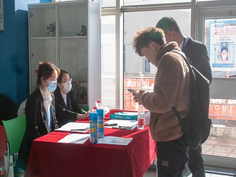 雙選會開始前,求職畢業(yè)生在場地外排隊等候入場,此次參加雙選會的同學不僅有大四的畢業(yè)生,也有低年級同學。雙選會期間,同學們挑選心儀的職位,將精心準備的簡歷投向心儀公司,部分單位門前排起了長隊,現(xiàn)場氣氛熱烈。