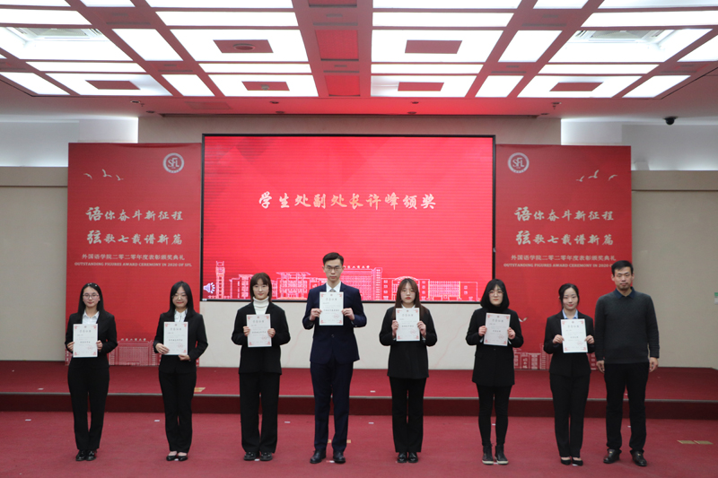 為表彰先進,凝聚合力,展示優(yōu)秀學(xué)子風(fēng)采,在全院學(xué)生中形成向先進榜樣看齊的學(xué)習(xí)風(fēng)氣,12月16日,外國語學(xué)院在良鄉(xiāng)校區(qū)模擬法庭舉行2019-2020學(xué)年“語你奮斗新征程,弦歌七載譜新篇”表彰頒獎典禮。學(xué)生處副處長許峰,學(xué)院黨總支書記劉影、黨總支副書記于濤,副院長苗天順、關(guān)濤、史巖林,院長助理王曉慶、王景云,專職組織員、輔導(dǎo)員、本科生及研究生參加本次典禮。