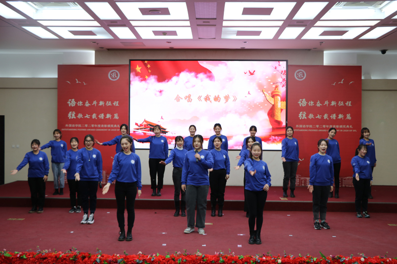 表演環(huán)節(jié)中,小品《疫情回國記》采用英語短劇的形式講述一位赴美留學(xué)生疫情期間歸國的曲折經(jīng)歷,以生動地表演向我們展現(xiàn)莘莘學(xué)子熾熱的愛國情感,以及世界各國人民同心抗“疫”、構(gòu)建人類命運共同體的力量。歌曲《我的夢》融入多元文化,外語合唱團精心編排,以動人的歌舞表達(dá)不畏艱難、勇于追夢的理想信念。