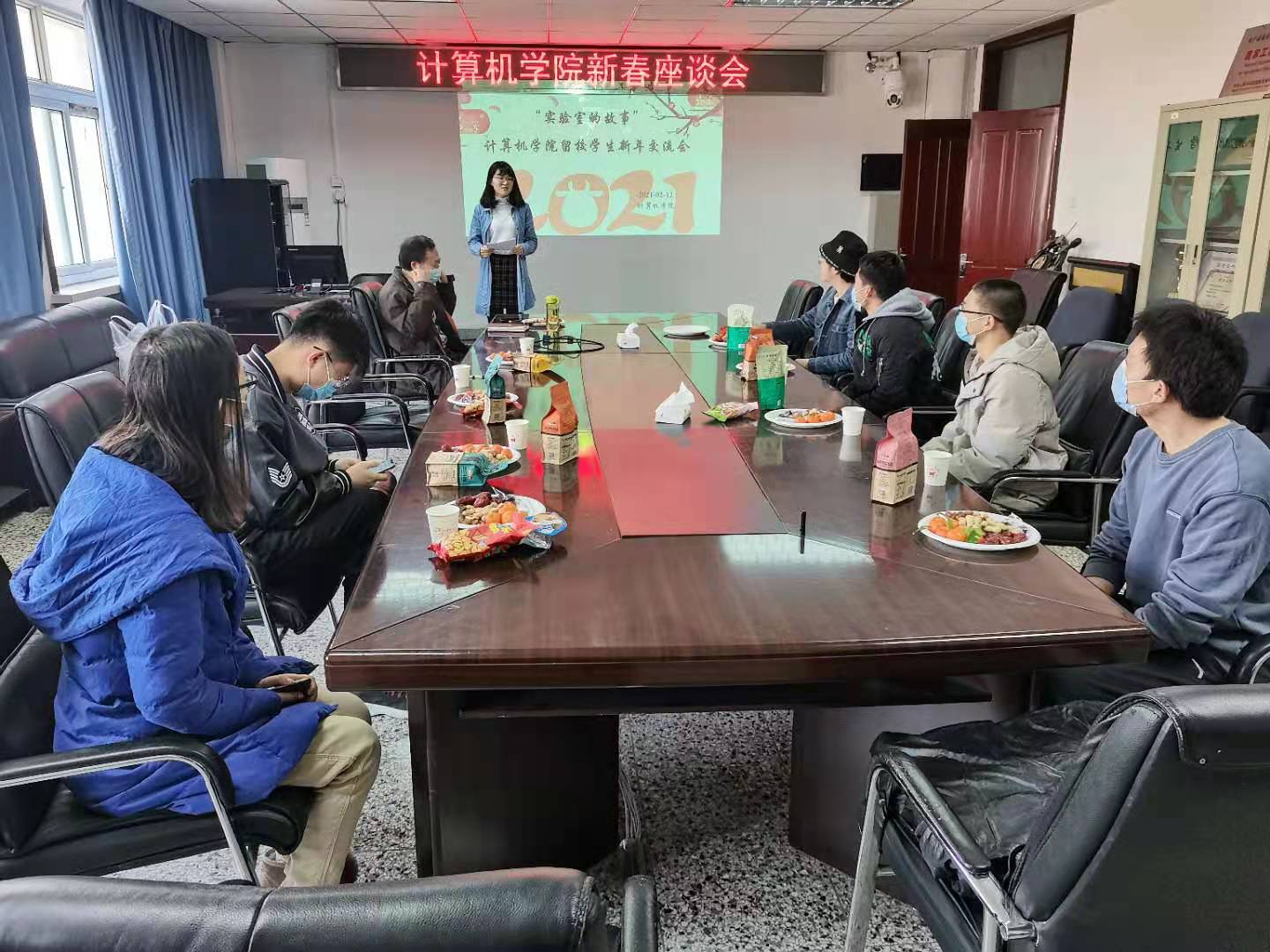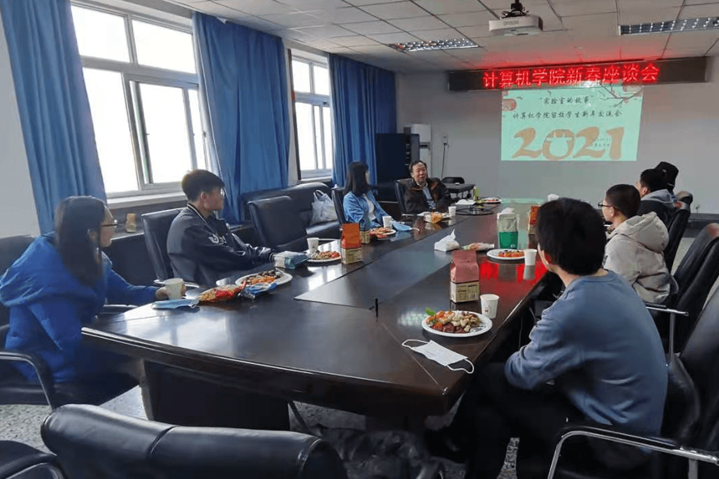2月12日大年初一,為緩解留校過年學生的思鄉情緒和學業壓力,計算機學院黨委書記蔡強和學院全體留校學生相聚在阜成路校區,召開了以“實驗室的故事”為主題的新年交流會,一起回眸昨天、暢想未來。交流會由高翠主持。