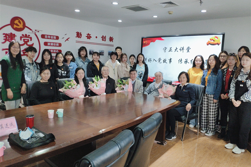 莫述誠教授動情地講述了他從一個懵懂少年到耄耋老人的歲月,并以親身經(jīng)歷向我們展示了中國共產(chǎn)黨在他的成長之路上所起到的深遠(yuǎn)影響。少年時期由于家庭困難,本勵志求學(xué)的他在學(xué)業(yè)道路上受到了打擊,但好在有黨的支持和幫助,他申請了求學(xué)的路費以及助學(xué)金,支撐他能在北大順利完成學(xué)業(yè),然而造化弄人,大三那年他的身體突發(fā)疾病,在老師和同學(xué)的求助下,北京大學(xué)的校長得知了此事,親自聯(lián)系為莫述誠掛上了蘇聯(lián)紅十字醫(yī)院的號,經(jīng)歷了幾個月的治療終于痊愈。然而昂貴的治療費和伙食費使得他再次陷入困境,在黨的幫助下,醫(yī)院為他免去了所有的費用,最終順利康復(fù)出院。在畢業(yè)之際,學(xué)校要求畢業(yè)生去支援貧困地區(qū),他想:黨在他的成長路上給予了他莫大的幫助,在這關(guān)鍵時刻他應(yīng)該理所應(yīng)當(dāng)?shù)募缲?fù)起重任,他決心去最遠(yuǎn)的內(nèi)蒙地區(qū),并上交了入黨申請。由于身體原因,學(xué)校最終還是決定讓他留在北京,于北京輕工業(yè)學(xué)院任教,在任教期間他始終勤勤懇懇、兢兢業(yè)業(yè),并在自己的崗位上勇于探索、不斷學(xué)習(xí),還獲得了去美國做訪問學(xué)者的機會,回國后通過考核的他成功入黨,然而這距離他提交完入黨申請已經(jīng)過去了28年。莫述誠教授對于黨的執(zhí)著與熱忱使得他縱使等待了28年,也從未放棄,始終奉獻著,最終成功加入了黨組織。在他任教期間,經(jīng)歷了三次建校,并隨學(xué)校出訪俄羅斯,他為我們生動講述了他在俄羅斯的訪問經(jīng)歷,在感受到蘇聯(lián)解體人民過著水深火熱的生活后,他深刻感慨黨為國家所做的巨大貢獻,并鼓勵青年人要向前看、向遠(yuǎn)看、向更高處看。