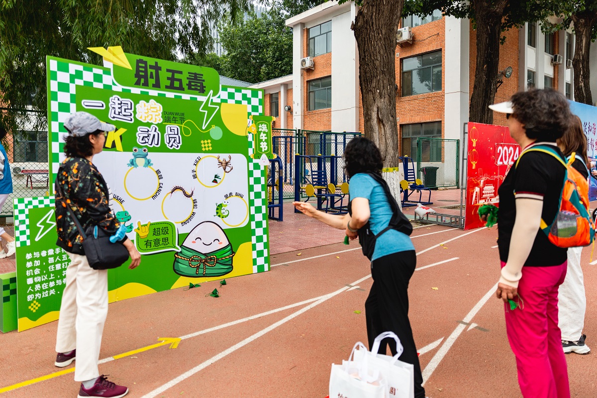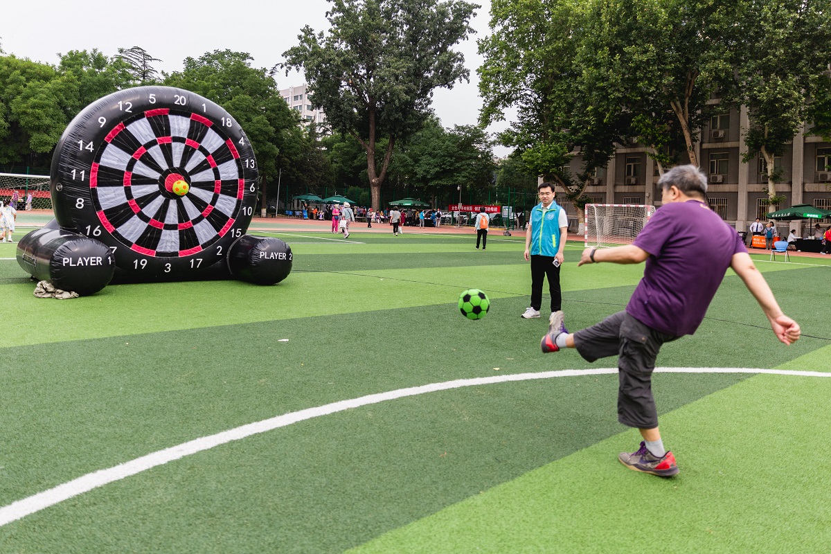 本次活動的主體項目是精心設計的趣味運動,讓每位參與者都能在輕松愉快的氛圍中享受運動的樂趣。“筷子夾球”項目需要在最短的時間內用筷子夾出乒乓球再放入指定位置,鍛煉老年人的手指靈活度。“足球飛鏢”“沙包擲準”“冰壺”“動感單車”鍛煉老年人的四肢精準度和力量。“投箭入壺”“吸盤射箭”、端午節民間傳統游戲“射五毒”“捶丸”既體現了傳統文化,又結合了現代技術,為健康運動增添了科技感。“木球攻門”“套圈尋寶”既考驗了策略思考,又增加了運動的趣味性。模仿游戲角色用彈弓將小鳥射向小豬的項目“憤怒的小鳥”充滿童趣,吸人眼球,既考驗參與者的力度控制,又激發了競技激情。“抓娃娃”讓老同志回到了童年時光,感受到滿滿的童趣。豐富的趣味運動項目寓意“點亮北京”,老同志們在參與中提高了健康理念,增添了生活樂趣,增強了為首都增光添彩的良好心愿。