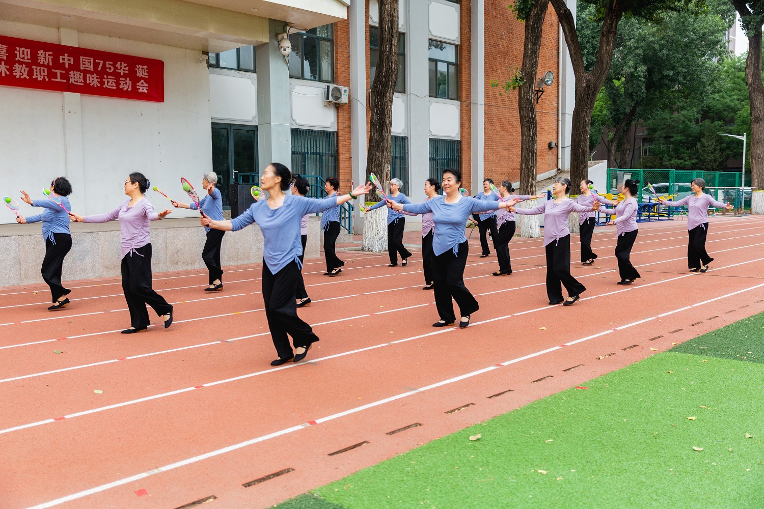 本次活動以“悅動夕陽,樂享健康,喜迎新中國75華誕”為主題,“金色年華向祖國,銀發會聚助母校”“團結奮進‘雙一流’,銀齡聚力譜新篇”“運動讓生活更美好,友誼讓晚年更精彩”標語表達了老同志們的心聲。整場活動歡聲笑語,熱鬧非凡,三百余名老同志們精神抖擻,積極參與各項活動。