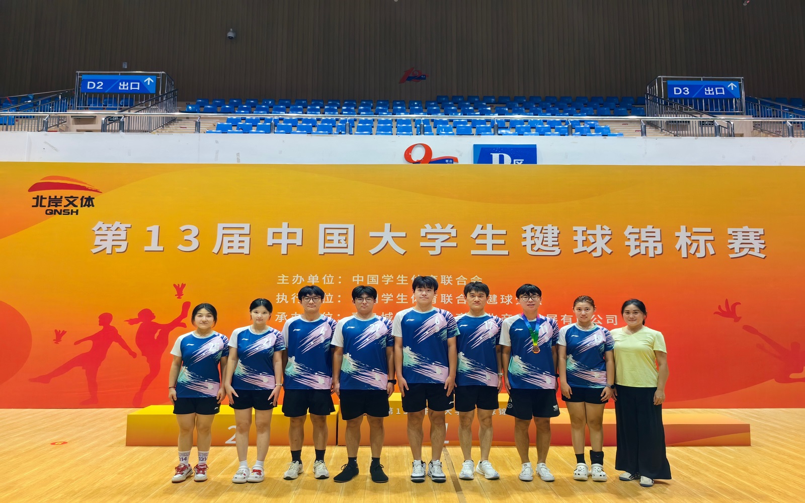 校毽繩隊(duì)參加第13屆中國大學(xué)生毽球錦標(biāo)賽獲得男子花式毽球單人規(guī)定套路賽甲組第三名、混合雙人平踢毽球單項(xiàng)賽甲組第五名、男子花式毽球單人盤踢計(jì)數(shù)賽甲組第六名、男子花式毽球單人全能計(jì)數(shù)賽甲組第六名、毽球男子雙人賽甲組第六名、女子花式毽球單人規(guī)定套路賽甲組第八名、平踢毽球女子三人賽甲組第七名。帶隊(duì)教練李鑫楠。