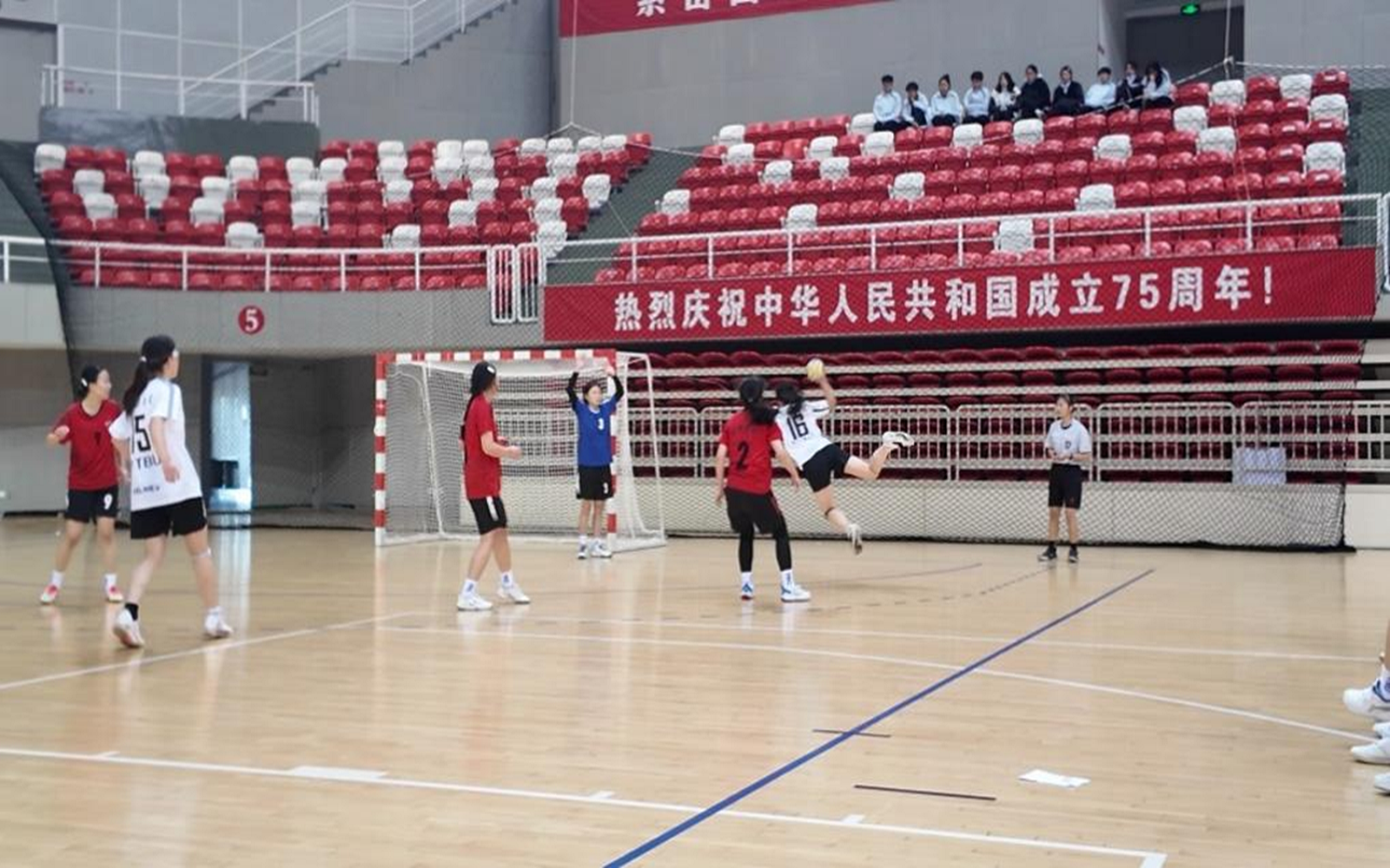 校女子手球隊(duì)參加第2屆中國大學(xué)生五人制手球錦標(biāo)賽獲得冠軍。帶隊(duì)教練彭家澍。