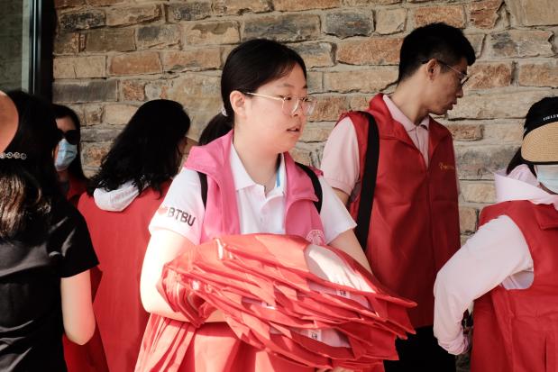 學生黨員志愿者們無懼烈日,持續三個小時在炎熱中用挺拔的身姿舉起黨旗,堅定著對黨的忠誠;他們無懼酷暑,在熱浪里組織開展一次又一次背簍交接儀式,讓紅色精神在一代代人之中傳續;他們無懼勞累,不厭其煩地將百余件衣服整理、按尺碼分類,準確無誤地分發到每一個參觀者的手中;他們不畏辛苦,跟隨講解員一次次走進展館,引導每一個參觀者完整體驗學習參觀流程,為游客答疑解惑。學生黨員志愿者們用實際行動踐行著紅色背簍“堅決聽黨話、堅定跟黨走、堅持為人民”的情懷與精神。