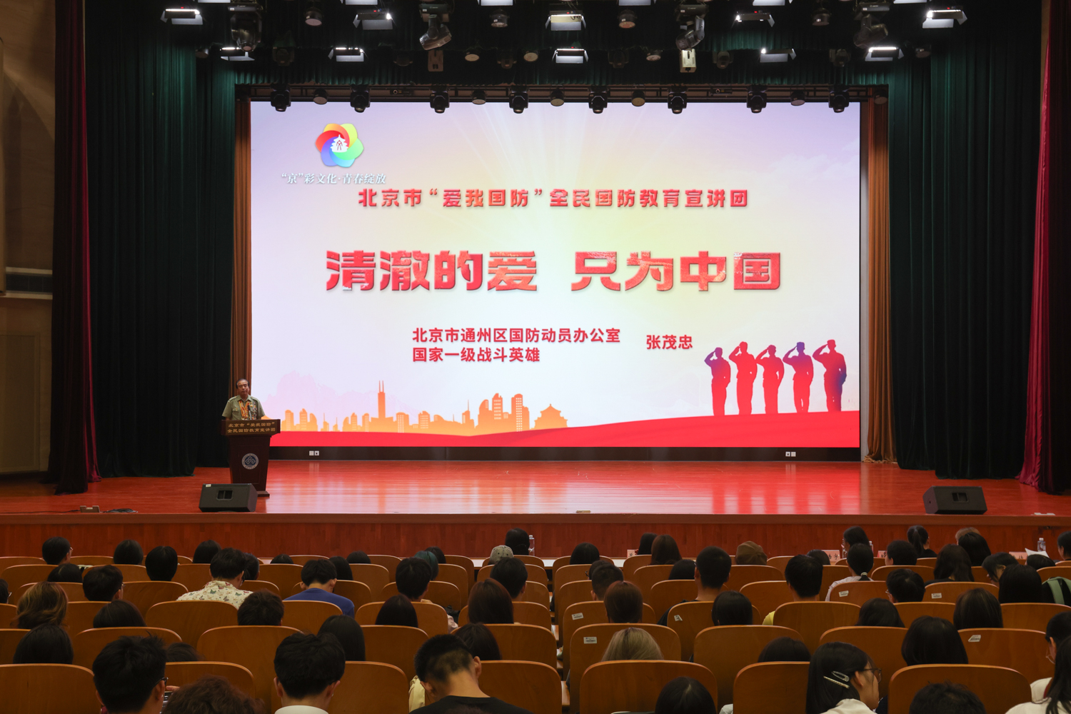 30年軍齡,27處傷痕,他用血肉之軀筑起了祖國的鋼鐵長城。北京市通州區(qū)國防動員辦公室二級調(diào)研員、一級戰(zhàn)斗英雄張茂忠用他那飽經(jīng)風(fēng)霜的聲音,向師生們講述了那段驚心動魄的邊境防御作戰(zhàn)。在敵人猛烈的炮火下,他帶領(lǐng)全班戰(zhàn)士堅(jiān)守陣地,連續(xù)激戰(zhàn)五個(gè)晝夜,打退敵人41次進(jìn)攻,用實(shí)際行動詮釋了“一不怕苦,二不怕死”的革命精神。特別是當(dāng)腸子流出體外時(shí),他依然咬緊牙關(guān),將腸子塞回肚子繼續(xù)戰(zhàn)斗,這一幕震撼了在場的每名師生,也讓“清澈的愛,只為中國”這句話更加深入人心。