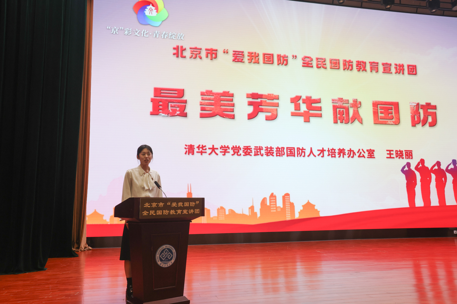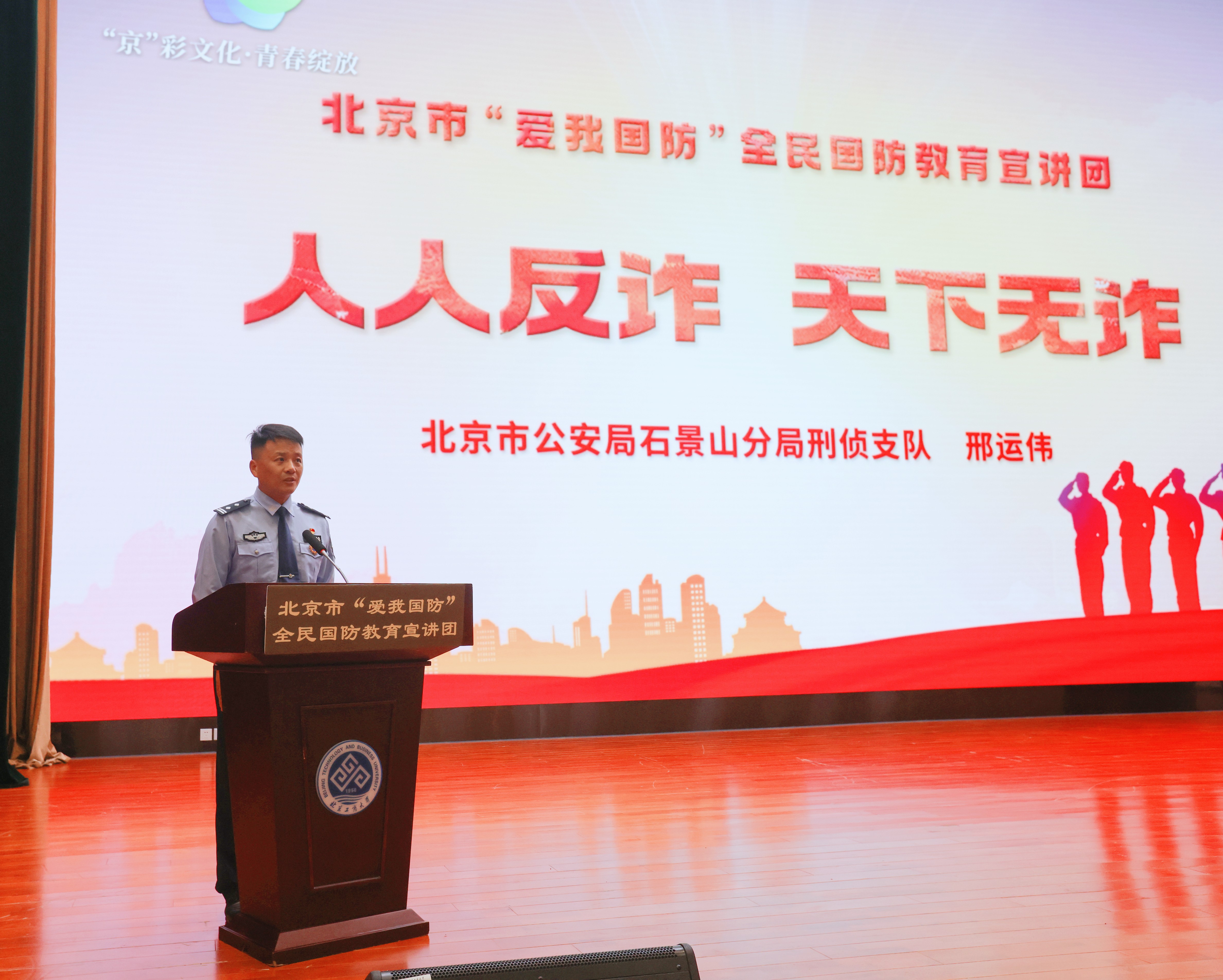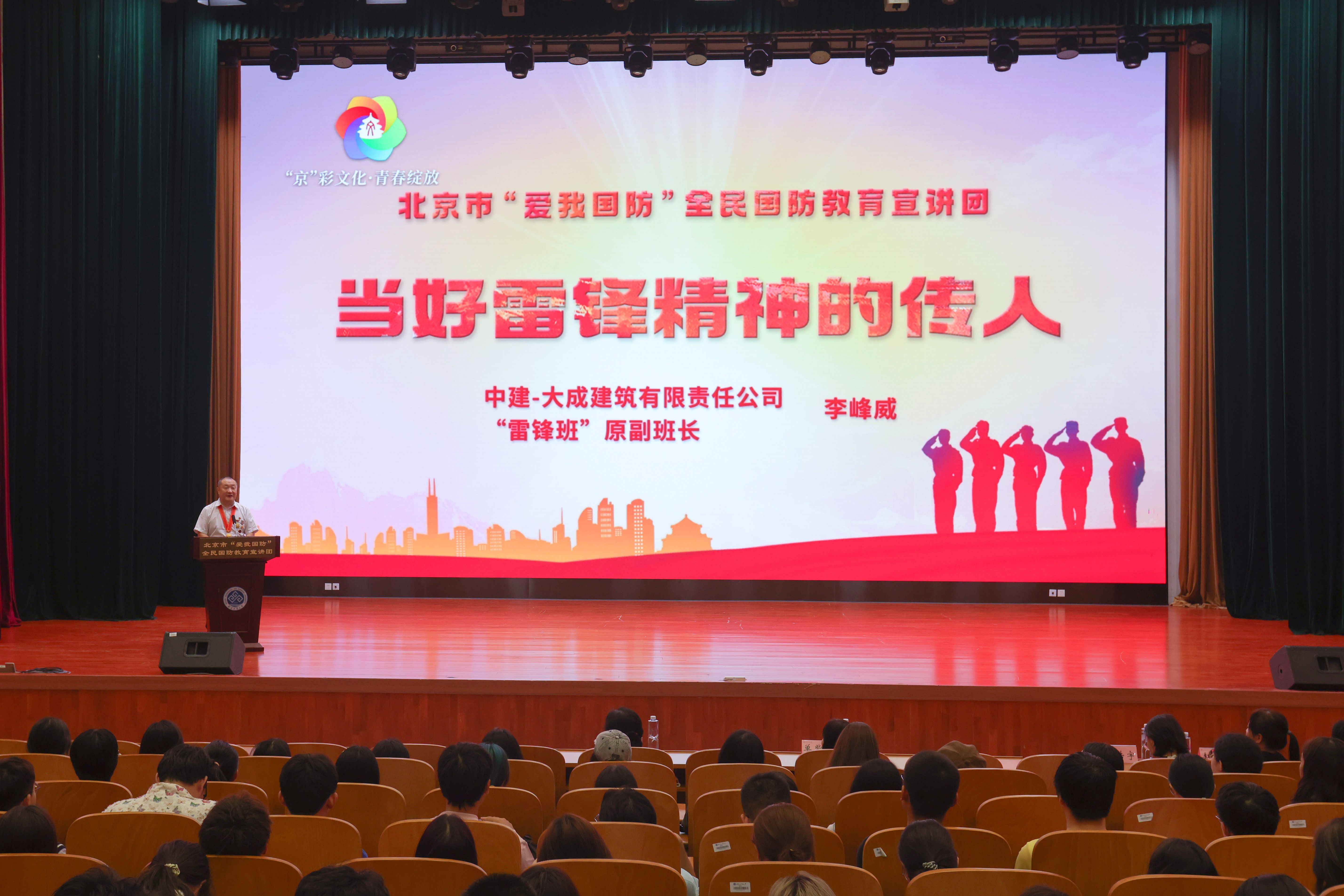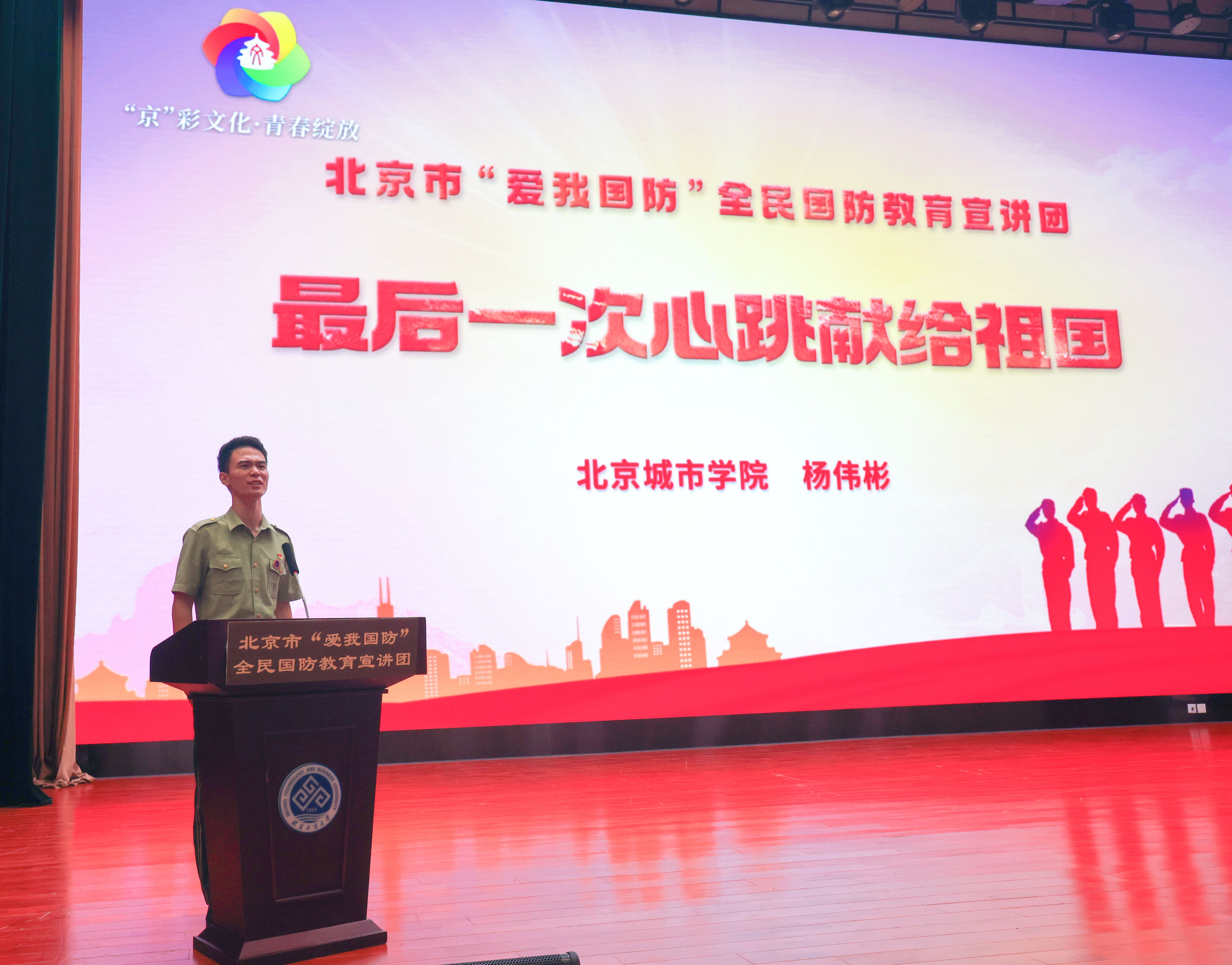 為提升國防安全意識,厚植愛國主義情懷,結(jié)合學(xué)校新生入學(xué)教育安排,9月7日,北京市“愛我國防”全民國防教育宣講團(tuán)“‘京’彩文化 青春綻放” ——信仰行系列巡講北京工商大學(xué)專場報(bào)告會在我校良鄉(xiāng)校區(qū)隆重舉行。北京市社科院黨組成員、副院長、市委講師團(tuán)團(tuán)長肖峻峰出席報(bào)告會,校團(tuán)委書記單紫薇,校團(tuán)委干部蔡皓宇、趙曉萌以及全體2024級本科新生聆聽了報(bào)告會。
