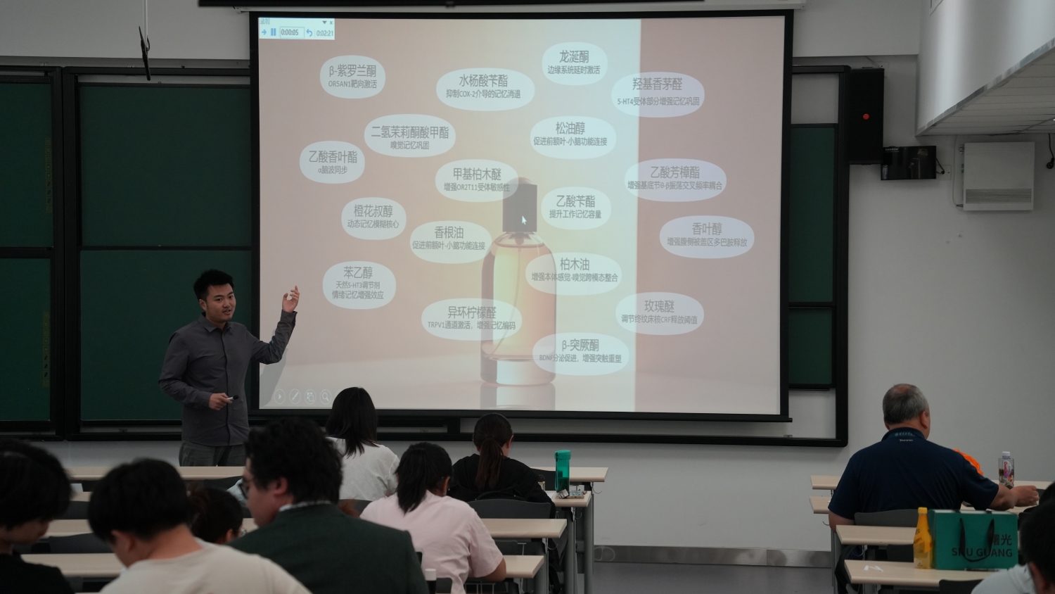 本屆大賽共有17組團隊參加了北京賽區的食品組和日化組的決賽。比賽分為理論考試、產品設計答辯兩個環節,現場的氣氛緊張而熱烈,選手們從香精的設計理念、配方結構、香氣質量、成本控制、應用場景等多個維度對參賽作品進行了展示。評委們則針對匯報內容進行了提問。