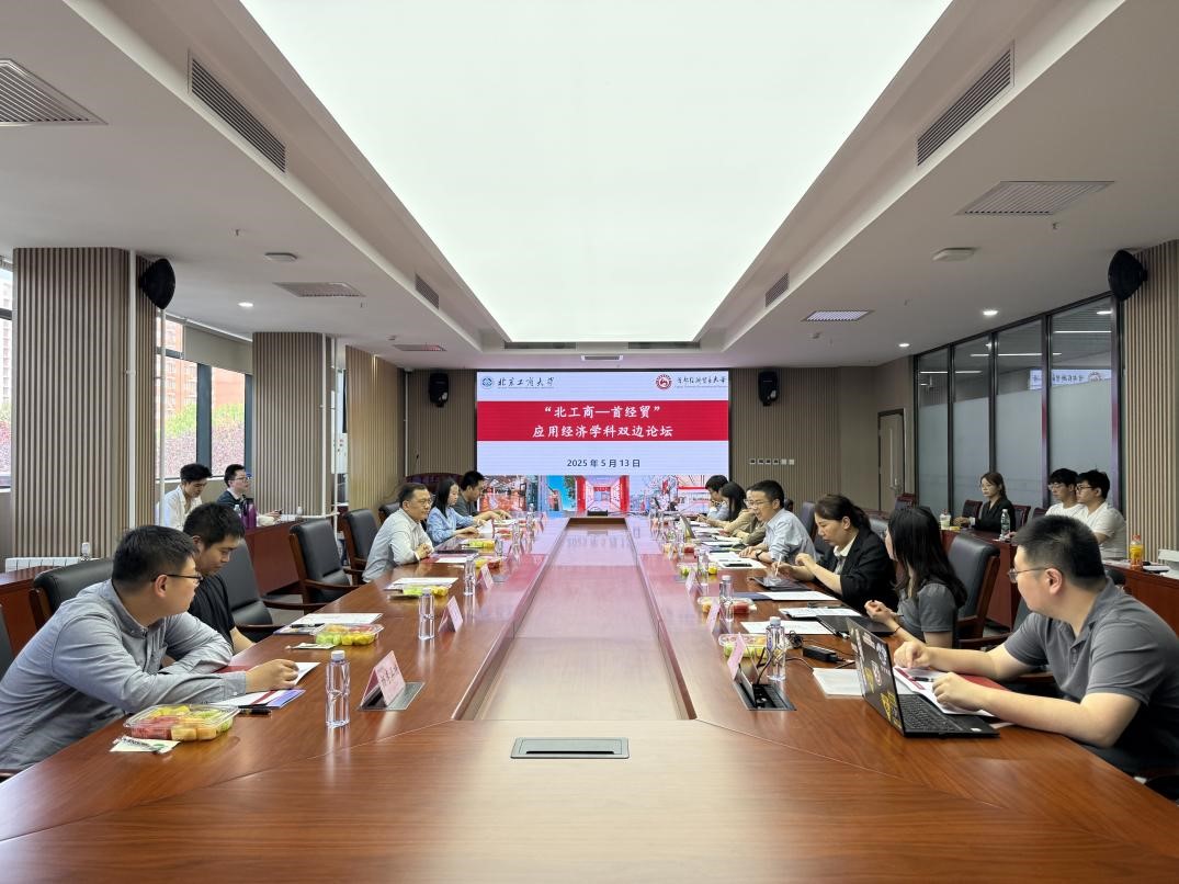 5月13日下午,“北工商-首經(jīng)貿(mào)”應用經(jīng)濟學科雙邊論壇在我校良鄉(xiāng)主校區(qū)舉辦。首都經(jīng)濟貿(mào)易大學金融學院院長周開國教授,數(shù)據(jù)科學學院副院長沙葉舟教授,科研處副處長何楓教授,金融學院教師焦安琪副教授、汪念玲副教授、馬彪副教授、楊李正博,北京工商大學經(jīng)濟學院執(zhí)行院長詹新宇教授,副院長牛曉燕副教授,經(jīng)濟系主任陳真玲教授、教師楊曉婷副教授、張凡,金融系李波副教授、李惠璇副教授和我院20余位研究生參加此次論壇交流活動。