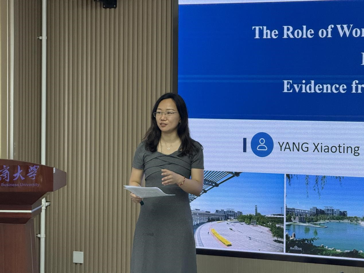 楊曉婷副教授報告了論文“The Role of Women’s bargaining power in the Allocation of Household Financial Assets: Evidence from Private Lending of CHFS Database”。文章基于CHFS數(shù)據(jù),構建女性議價能力指標,采用IV-Probit模型解決內生性,研究了女性議價能力如何影響家庭金融資產(chǎn)配置的問題。研究結論為:女性議價能力提升顯著增加家庭風險資產(chǎn)配置(如股票、基金)和民間借貸參與率,但對房產(chǎn)投資存在擠出效應。焦安琪副教授點評建議,區(qū)分城鄉(xiāng)/教育水平異質性、驗證內生性工具變量并補充機制檢驗。