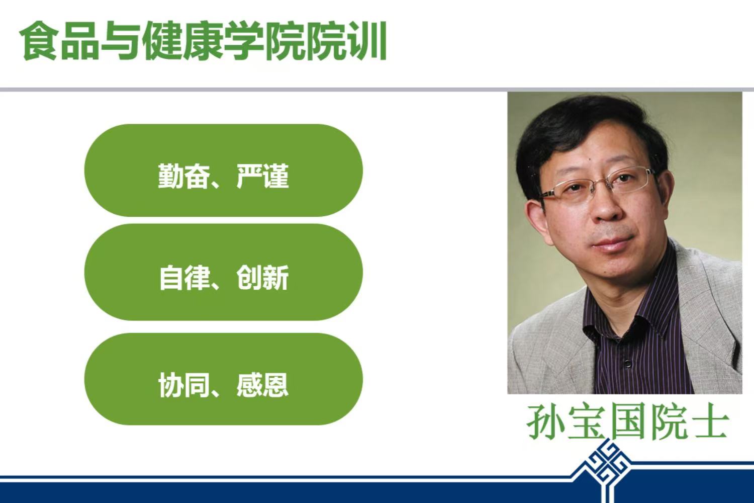 學院正式介紹院徽院訓。院徽的設計在外形上融入“中國居民平衡膳食寶塔”與“食”字隸書,細節上融入了天壇祈年殿、DNA雙螺旋結構和麥粒等元素,設計蘊含食品與健康學院“勤奮、嚴謹、自律、創新、協同、感恩”的院訓,同時展現出食品與健康學院師生的智慧。在院訓的激勵下,學院內不斷涌現出更多的優秀學子,學院也在多個方面榮獲佳績。在主持人的介紹下,食品與健康學院在科創競賽、社會實踐、文體活動、迎新活動和新生軍訓等方面的成績畫卷向大家徐徐展開。