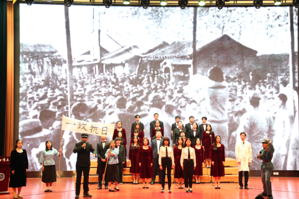 全場(chǎng)師生觀看了由商學(xué)院團(tuán)委特制的紀(jì)念“一二·九”運(yùn)動(dòng)視頻后,活動(dòng)正式開(kāi)始。