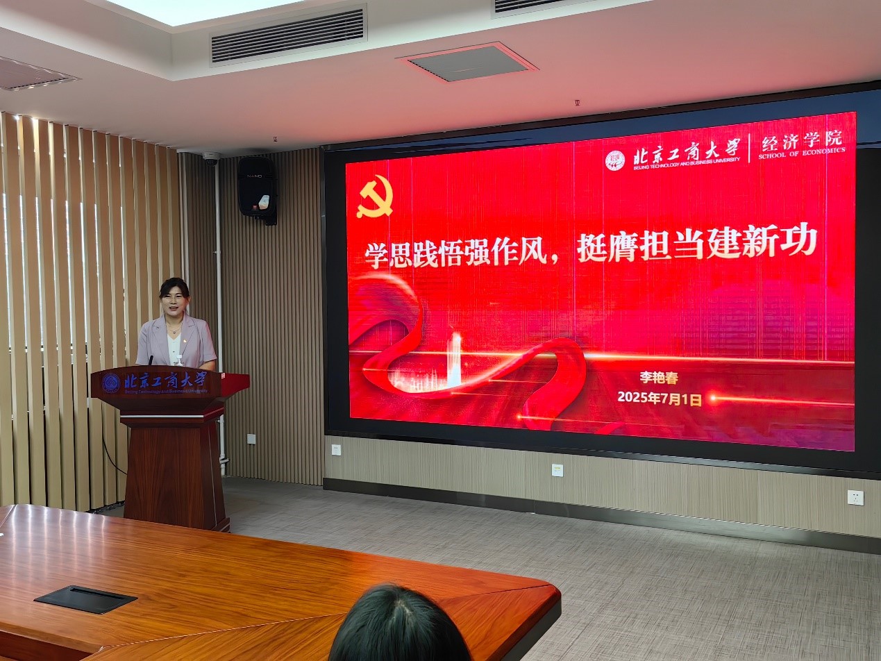 本科生黨建工作室組織部負責人楊澤凱介紹2025年春季學期發展對象培養考察情況。他表示,牢牢遵循發展黨員工作控制總量、優化結構、提高質量、發揮作用的總要求,經濟學院持續優化北京工商大學經濟學院《學生入黨積極分子“發展積分”制度實施辦法》落地運行,積極探索創新學生黨員、學生入黨積極分子考察內容、標準、路徑和方式方法,現已形成立體式、多渠道的學生黨員培養考察體系。經考察,春季學期共有46名發展對象自身條件合格,入黨材料審閱合格,符合黨員標準,由各支部接收為預備黨員。