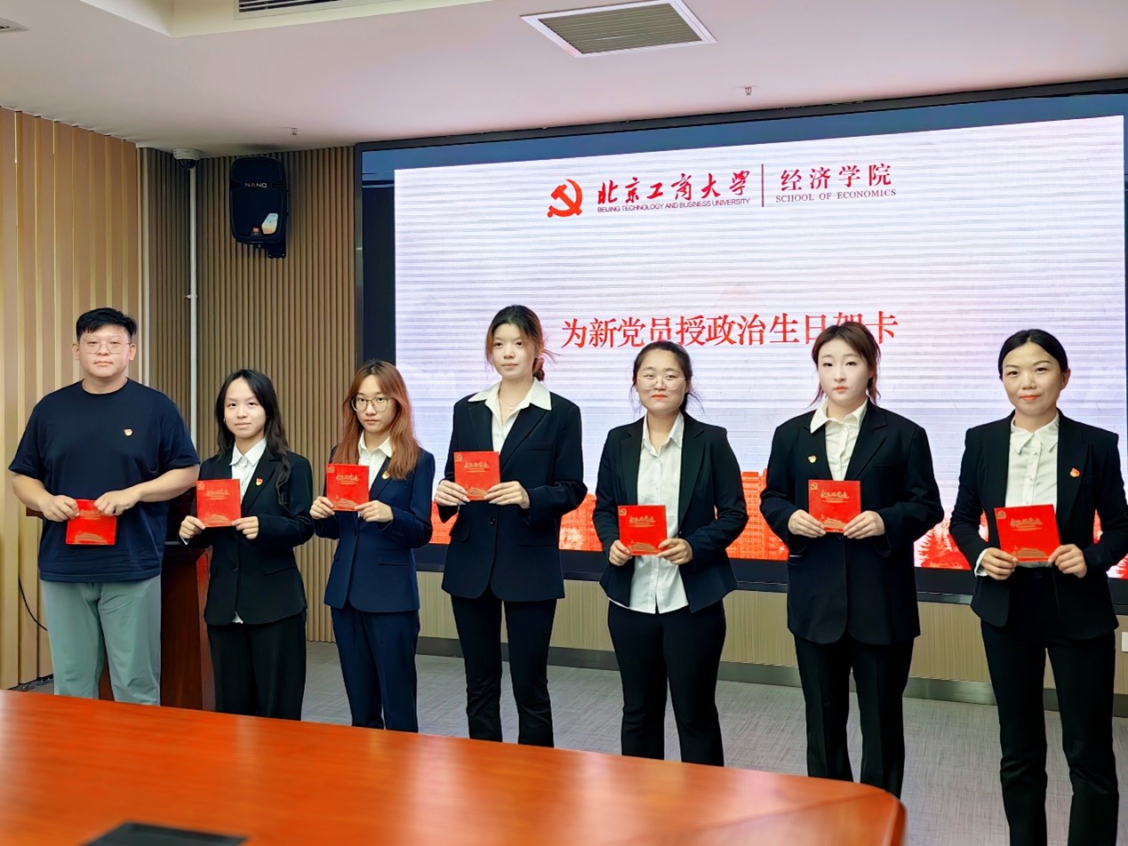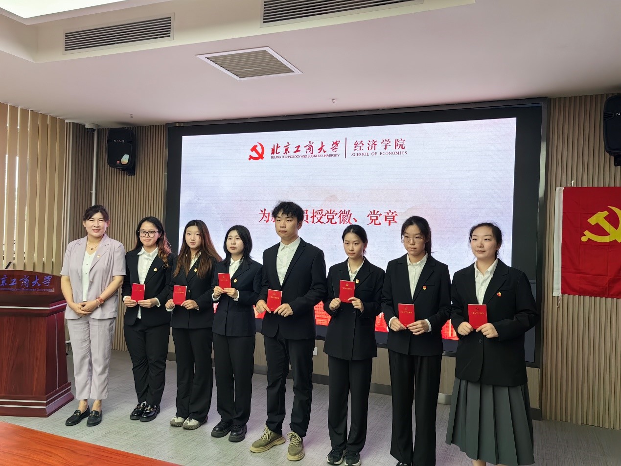 經濟學院黨委副書記李艷春為新黨員代表授黨徽、黨章。