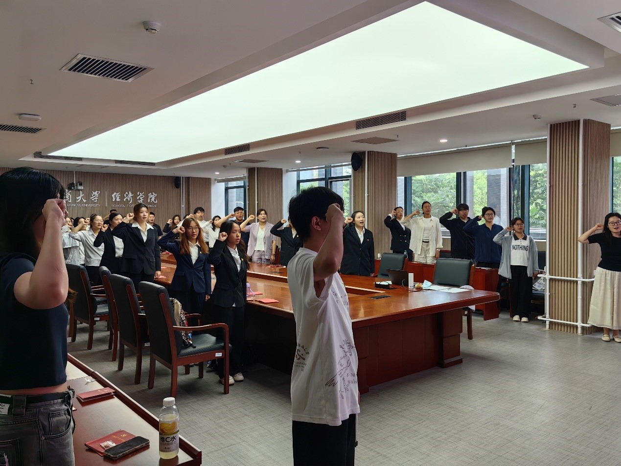 作為經濟學院學生黨建工作的品牌活動,新發展黨員“第一堂黨課”暨入黨宣誓儀式通過開設專題黨課、頒發黨徽黨章、贈送政治生日賀卡、舉行集體宣誓等多元形式,引導新發展黨員從思想上與行為上雙重入黨,切實發揮先鋒模范帶頭作用,以實干擔當履行入黨誓詞,永葆為共產主義奮斗終身的理想信念。