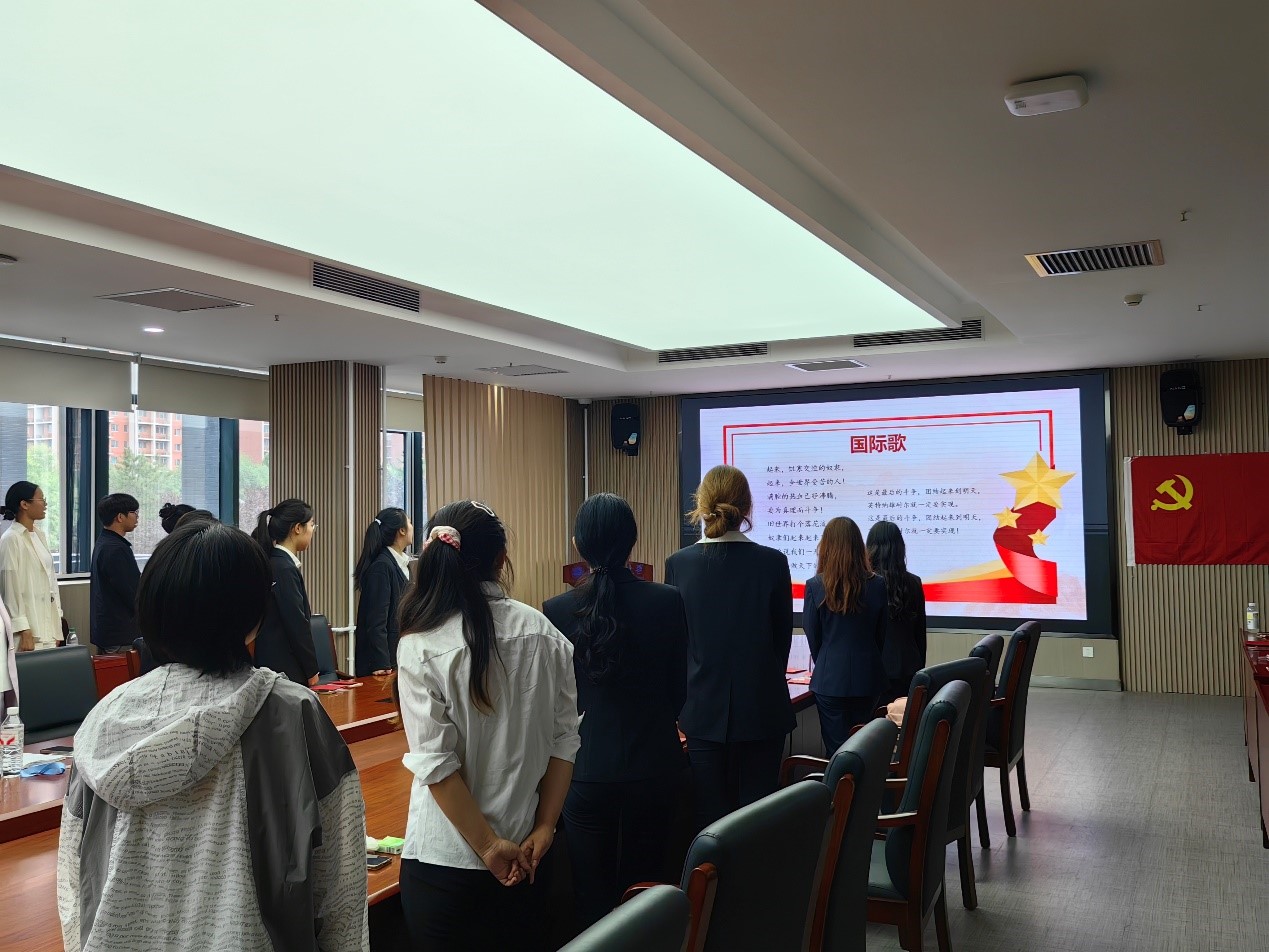 新老黨員共同合唱國際歌,集體宣誓儀式在雄壯的國際歌聲中結束。