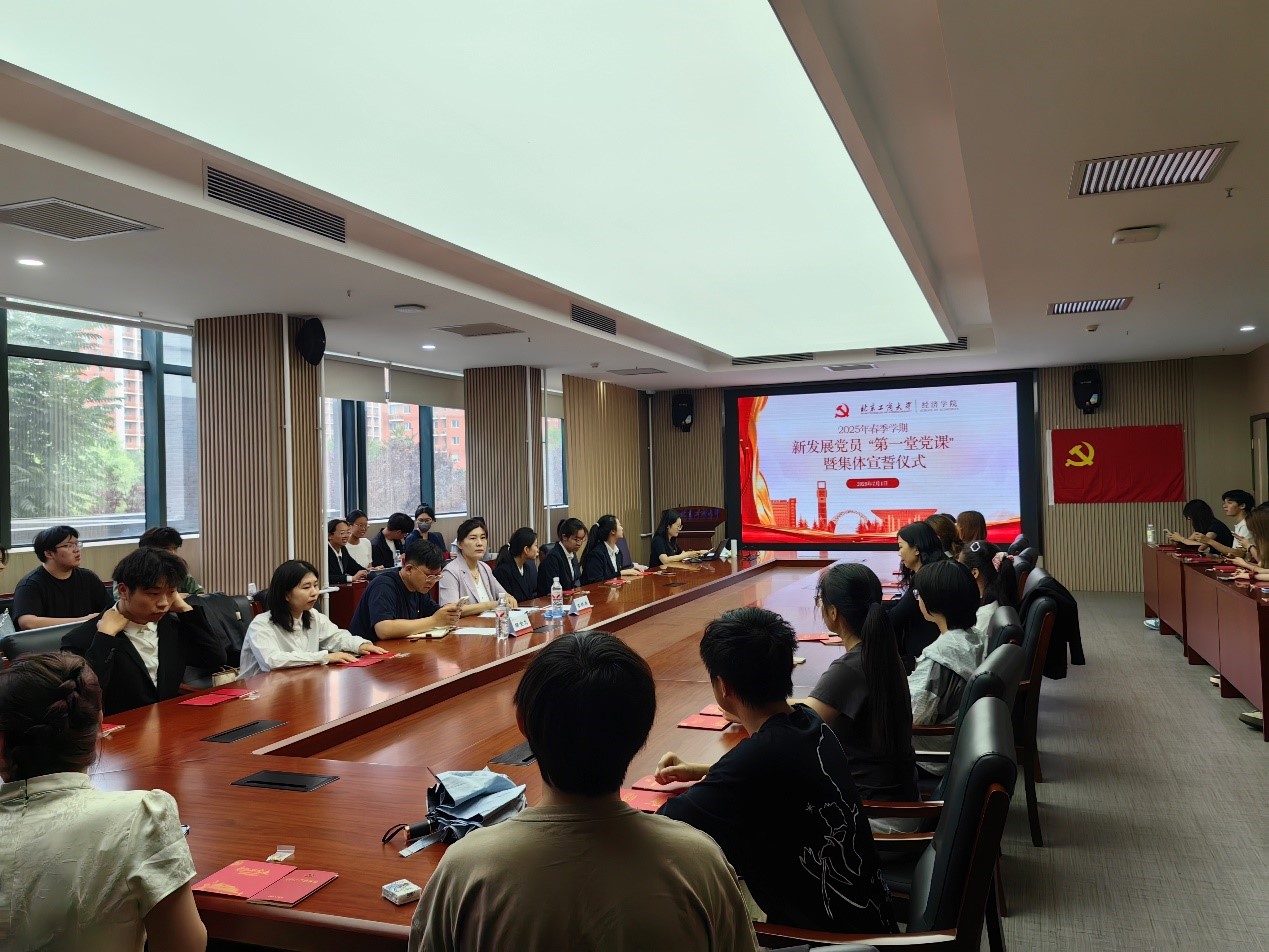 為慶祝中國共產黨成立104周年,深入貫徹中央八項規定精神,進一步提高政治站位,深刻認識持續深化作風建設的重要意義,通過莊嚴的儀式教育筑牢學生黨員思想根基,不斷增強政治判斷力、政治領悟力、政治執行力,7月1日,經濟學院舉行2025年春季學期新發展黨員“第一堂黨課”暨集體宣誓儀式。經濟學院黨委副書記李艷春、專職組織員柳金龍、本科生黨建專項輔導員李文靜及春季學期新發展本研學生黨員46名參會。會議由本科生黨建專項輔導員李文靜主持。