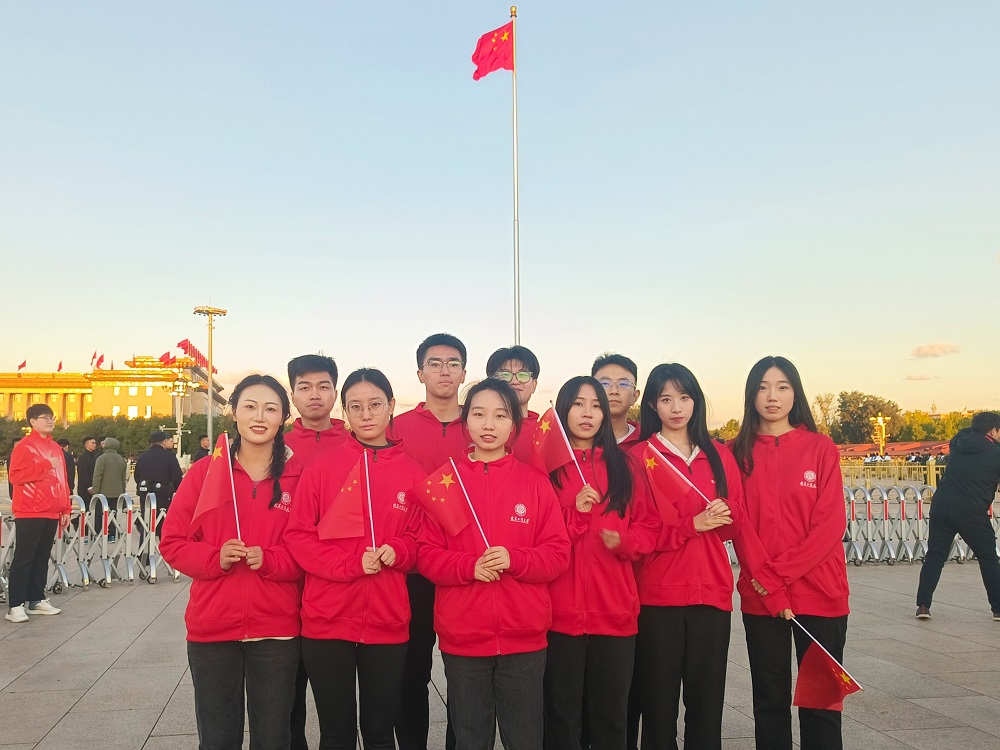 今年是中華人民共和國成立75周年,10月1日凌晨,我校188名師生代表來到天安門廣場,觀禮升國旗儀式,21名師生組成志愿者團隊,承擔活動現場的志愿服務和引導工作,開展沉浸式愛國主義教育活動,共同祝愿祖國繁榮昌盛、國泰民安。