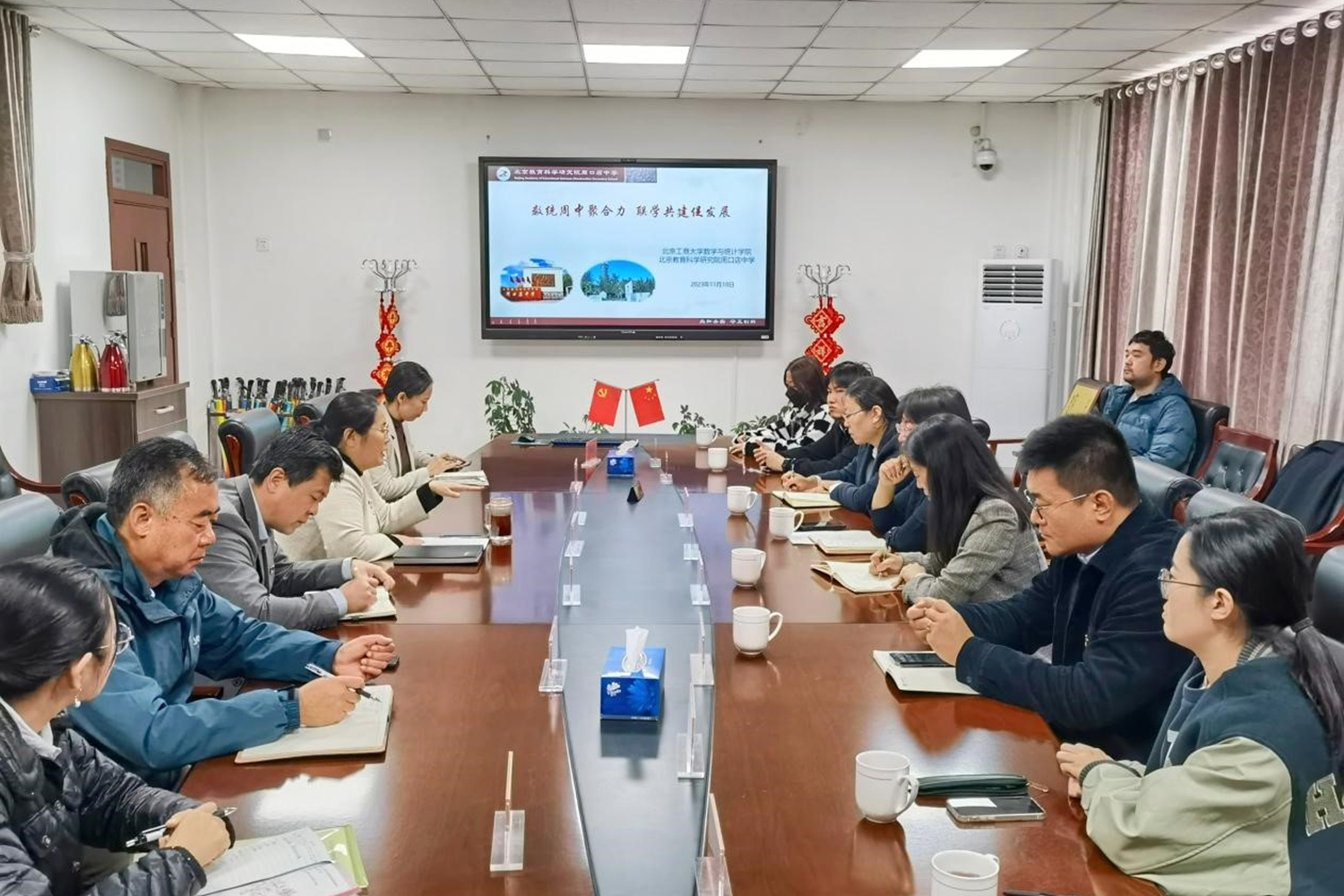 為深入推進(jìn)教育合作,數(shù)學(xué)與統(tǒng)計學(xué)院與北京教育科學(xué)研究院周口店中學(xué)于11月10日上午在周口店中學(xué)舉行了“紅色1+1”實踐基地共建儀式。