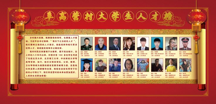 鄉(xiāng)村振興發(fā)展,既要靠黨的領(lǐng)導(dǎo),也要靠人才驅(qū)動。習(xí)近平總書記強調(diào),“致天下之治者在人才”,能培養(yǎng)和吸引優(yōu)秀人才,才能在競爭中占據(jù)優(yōu)勢。阜高營村是遠近聞名的“狀元村”,村里一百多戶人家,幾乎家家有大學(xué)生,甚至一家出兩三位大學(xué)生的也很常見。實踐團成員們看到,村黨支部為鼓勵村民們重視教育,在村口為歷年來考入高等學(xué)府的學(xué)子們設(shè)立了“大學(xué)生人才榜”,有考入北京大學(xué),北京理工大學(xué),中央財經(jīng)大學(xué)、還有中國人民公安大學(xué)等等。該村還為子女考上大學(xué)的家庭頒發(fā)了“大學(xué)生之家”光榮牌,使村民爭取榮譽、珍惜榮譽的榮譽感深入人心。