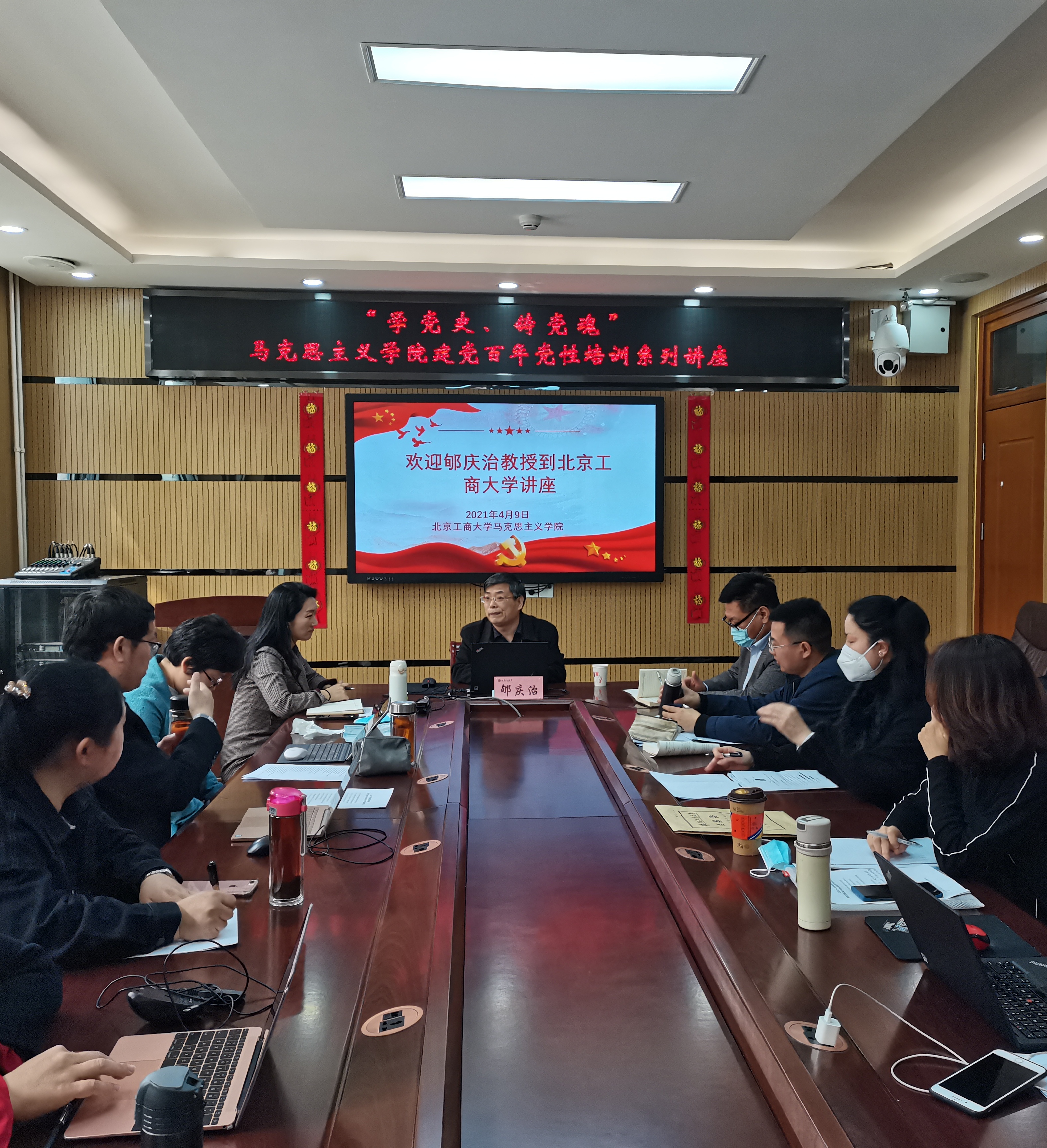 為進一步深入學習百年黨史,鑄就不朽黨魂,促進黨史學習教育常態化,以實際行動迎接中國共產黨建黨100周年,4月9日上午,馬克思主義學院邀請北京大學馬克思主義學院郇慶治教授進行專題培訓。學院黨總支理論學習中心組成員以及學院全體黨員師生參加教育學習。黨總支書記任金晶主持會議。