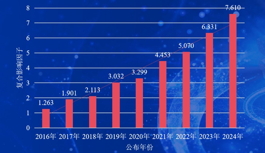 近日,《中國學術期刊(光盤版)》電子雜志社有限公司與中國科學文獻計量評價研究中心聯合發布《中國學術期刊影響因子年報》(人文社會科學?2024版),《北京工商大學學報(社會科學版)》2023年度的各項影響力指標再創歷史新高,復合影響因子首次突破7.0,達到7.610,較上一年度的6.331提升了1.279,增幅達到20.2%。
