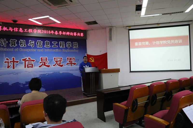 為進一步加強學生支部建設,深化學生黨員黨性教育,在大學生中積極培育和踐行社會主義核心價值觀,計信學院于11月30日組織全體學生黨員、預備黨員開展了主題為“重溫黨章,爭做模范”的專題培訓。