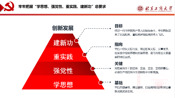 結合當前正在開展的學習貫徹習近平新時代中國特色社會主義思想主題教育,她希望畢業生黨員要牢牢把握“學思想、強黨性、重實踐、建新功”的總要求,緊緊錨定“以學鑄魂、以學增智、以學正風、以學促干”的目標任務,詳細闡釋了各部分內容之間內在邏輯性和科學性。