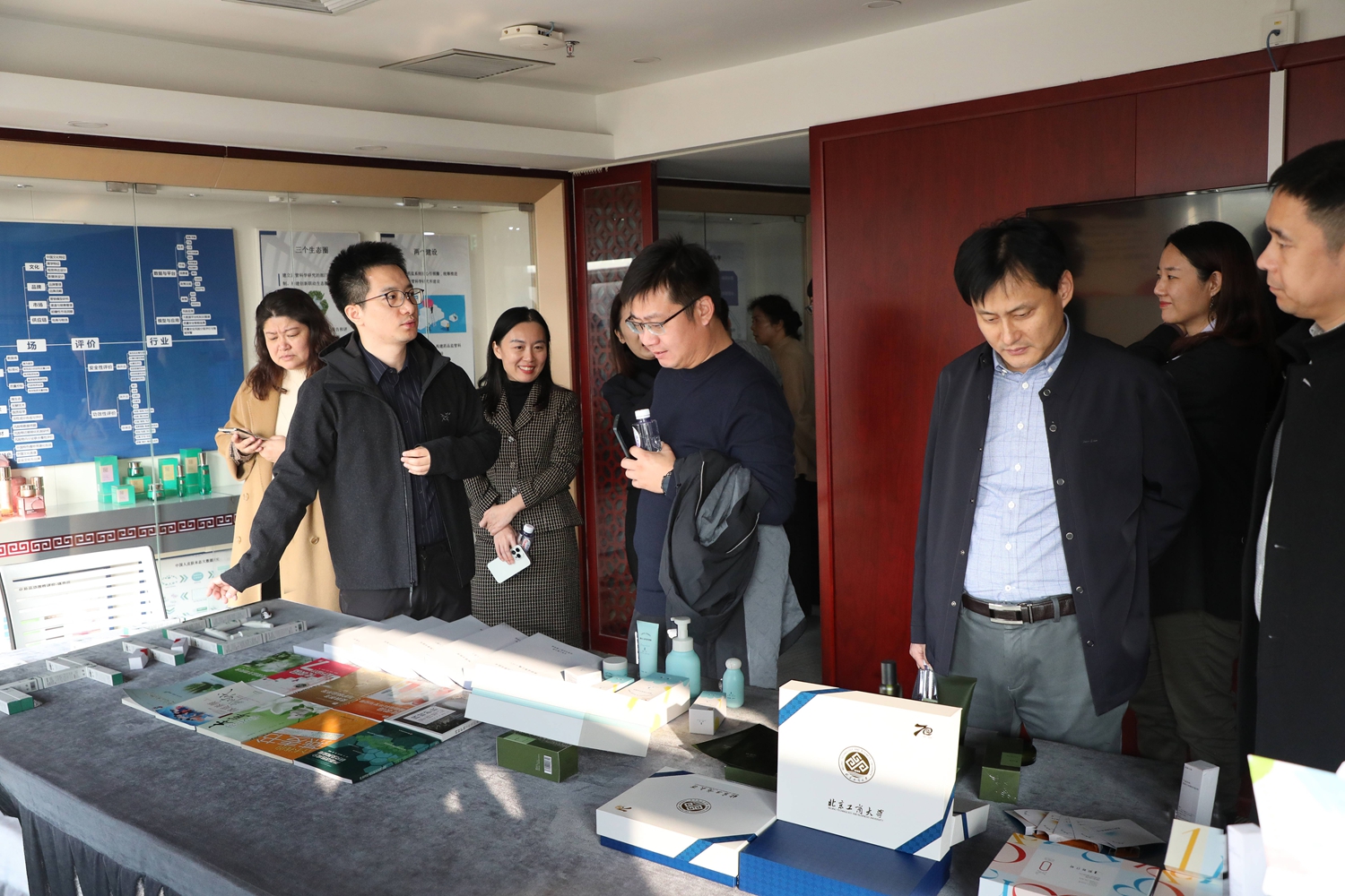 座談會前,彭松一行前往化妝品監(jiān)管科學(xué)研究基地、乳品科學(xué)技術(shù)實驗室、蛋白資源開發(fā)與營養(yǎng)食品研究實驗室以及中國輕工業(yè)釀酒分子工程重點實驗室進行實地走訪。各實驗室的負責(zé)人詳細介紹了相關(guān)領(lǐng)域的研究成果和發(fā)展前景。王彥波、王海偉等陪同參觀。