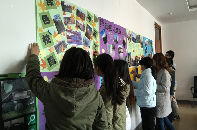 4月13日,食品學院舉辦“綠色校園,美麗工商”攝影展。院心理部將大一各班參評的9張海報張貼在評比墻上,經近百名同學通過粘貼愛心的投票方式評比出了最受大家歡迎的綠色校園攝影作品海報,一、二、三等獎分別由食品143班、環境142班、食品142班獲得。在投票過程中,來自生物132的姚冬梅表示:“參與這次活動的班級都很用心,作品緊貼主題,而且都很有新意,活動讓同學們記錄下自己美麗的校園,同時讓我們了解到珍惜學校綠色的環境就是善待自己。”