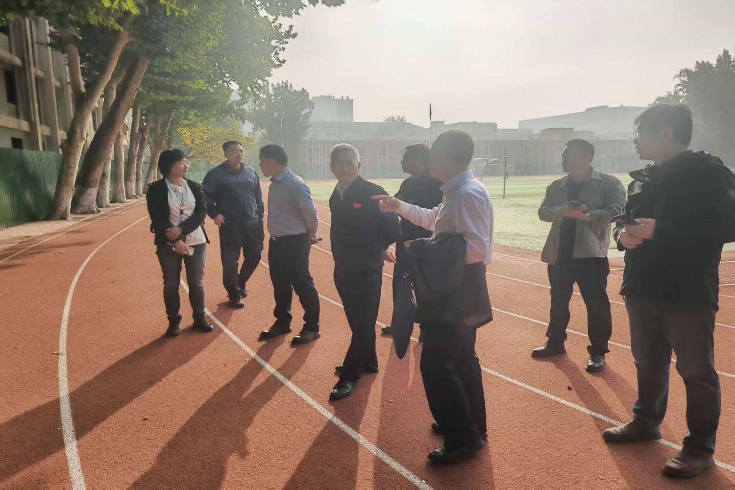 會前,李中奇帶隊實地調研了阜成路東區操場,仔細察看了操場跑道、運動場地、觀賽區域等基礎設施,詳細詢問賽事組織、器材配置、應急方案等籌備細節。各部門就運動會期間人員流動、檢錄處、賽事編排處、觀眾區、醫療點等賽事保障、安全防護等問題現場進行深入溝通交流、共謀對策。