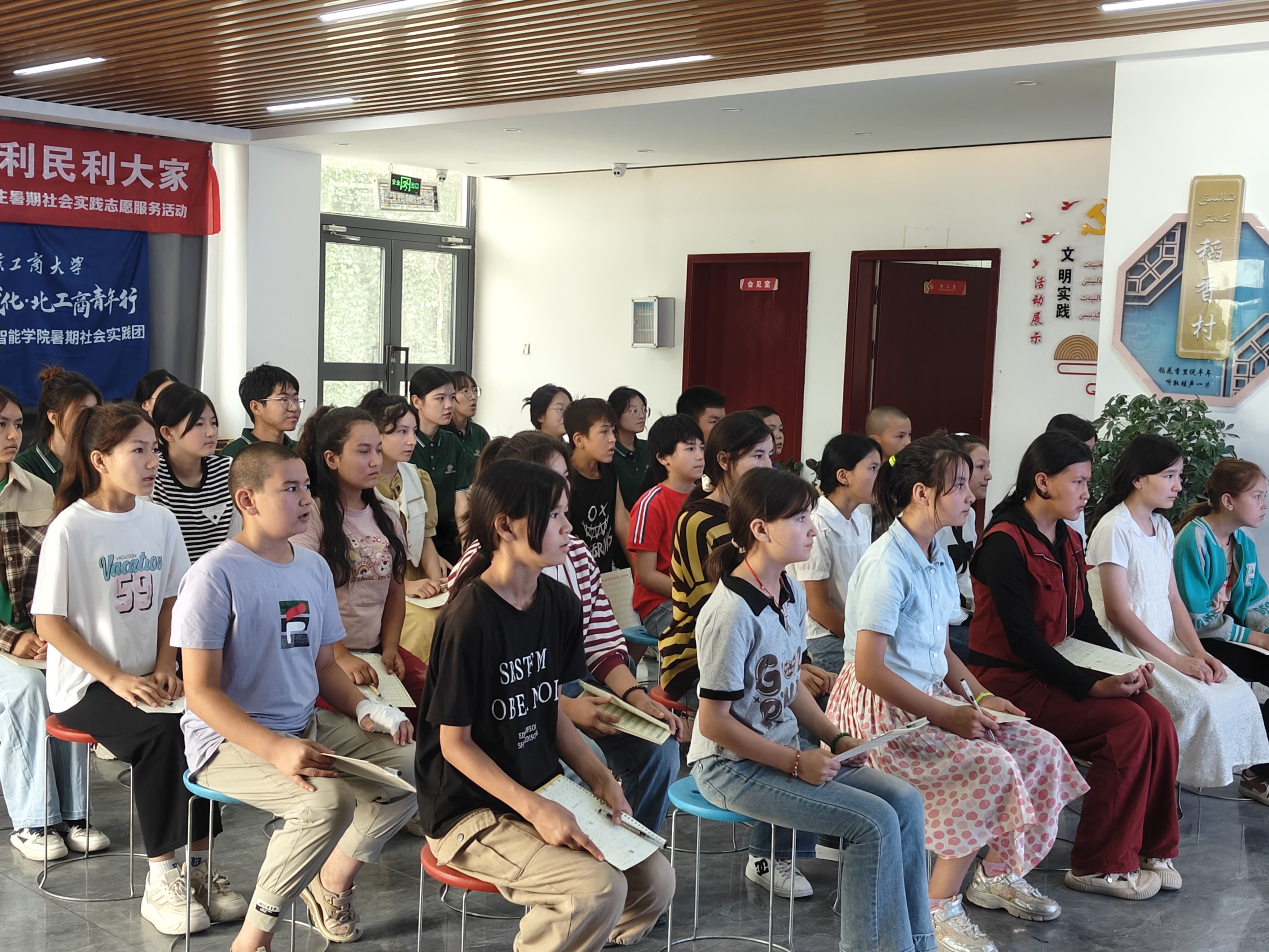 來自軟件工程專業的實踐團成員維吾爾族姑娘阿依薩納木帶著滿腔的熱情與感激,向當地小朋友們分享那段關于夢想、堅持與成長的求學歷程。在這片養育她的熱土上,她從小就立志走出家鄉、宣傳家鄉、建設家鄉,得益于國家教育政策的支持和自身的不懈努力,她成功走進了北京工商大學的校園,用一口流利的普通話架起了連接自我與世界的橋梁。阿依薩納木的故事是激勵稻香村的小朋友們學習普通話、追求夢想的典范,她以少數民族學生的身份,分享了自己的成長故事和對普通話學習的深刻感悟。她的故事不僅是個人奮斗的縮影,更是國家教育公平的生動體現。她鼓勵所有小朋友:學好普通話,讓夢想不再有界限,為實現自己的大學夢而奮斗。