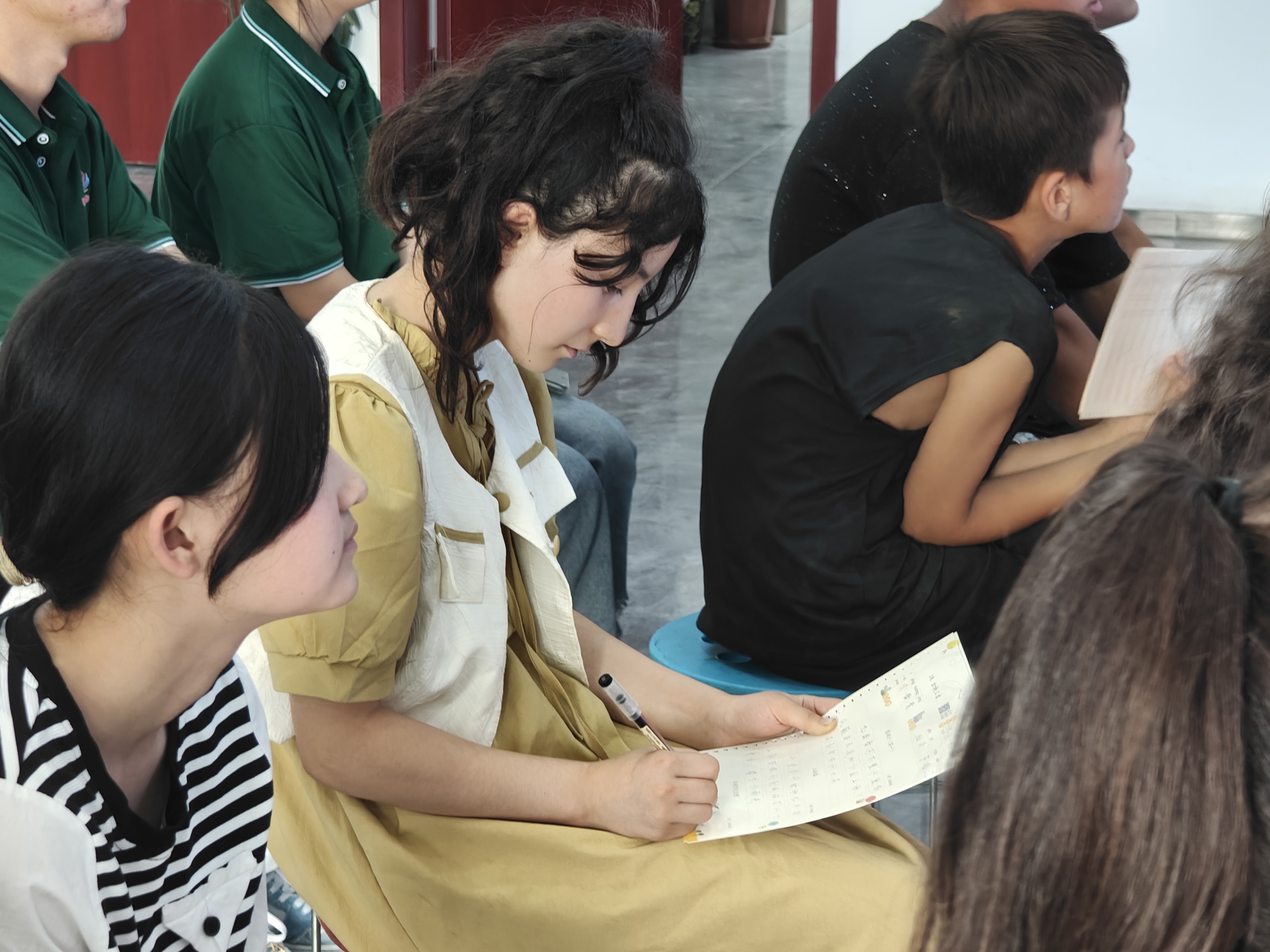 實踐團成員在指導老師的帶領下開展“語啟未來,文潤心田”普通話推廣課程,圍繞貼近生活的飲食主題展開教學,融入地域文化元素,從基礎的熱身口部操練習到繞口令挑戰,再到生動的問答互動引出專題散文段落學習,著力于提升同學們的普通話發音水平與表達能力。在紅色經典閱讀會環節,實踐團帶領當地學生學習毛澤東經典詩詞,通過詩詞賞析與誦讀,用普通話為橋梁,帶領同學們穿越歷史長河,深入體會紅色文化的精神內涵,厚植愛國情懷與民族自豪感。