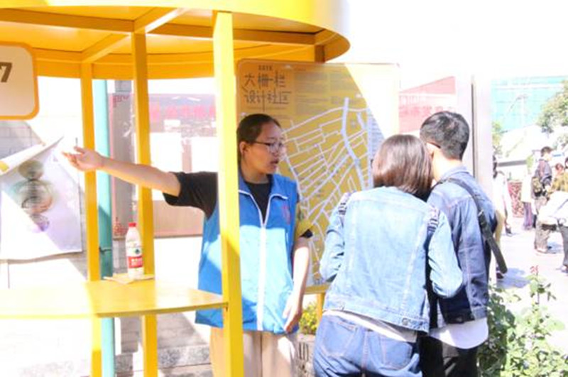 打開志愿者之家的門,換好藍色的志愿馬甲,佩戴好設計周袖標,負責人分配好每個人的崗位,一天的志愿生活就此開始。忙碌的志愿者們不論風雨、不論疲乏,沒有沮喪的聲音也沒有失望的面孔,用熱情與微笑對待每一位游人。志愿服務就像一堂社會課,面對不同游客的態度與問題,志愿者們學會了換位理解與多角度思考,角色轉換之間他們懂得了真正的尊重。