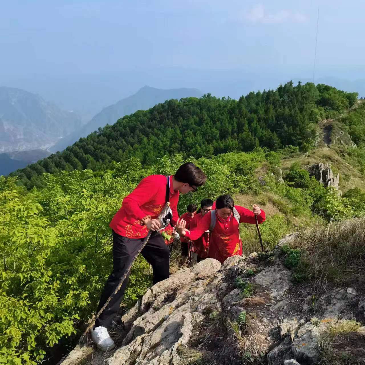 “紅色交通線”是一段連接了北平到延安的生命之路、信仰之路。國際經管學院與首都經濟貿易大學學子在史家營鄉黨委組織部劉部長的帶領下,重走這段長達10公里的紅色交通線,在深山老林里跋涉,在開闊山梁上前行,憑借逢山開路、遇水架橋的精神,踏石留印、抓鐵有痕,一步一個腳印,從百瑞谷到廟安梁,翻越四座大山,歷經十余公里山路,重新體驗紅色交通線。入黨積極分子劉耕潤、賴子晨、段童感慨道:“ 一條條山間小路,聯結了北平到延安,匯聚成共產黨人精神譜系的信仰之路。沿途學習黨百年發展、體驗革命史、感悟發展史,是一場‘綠色生態’+‘紅色傳承’的黨史學習教育之旅。”