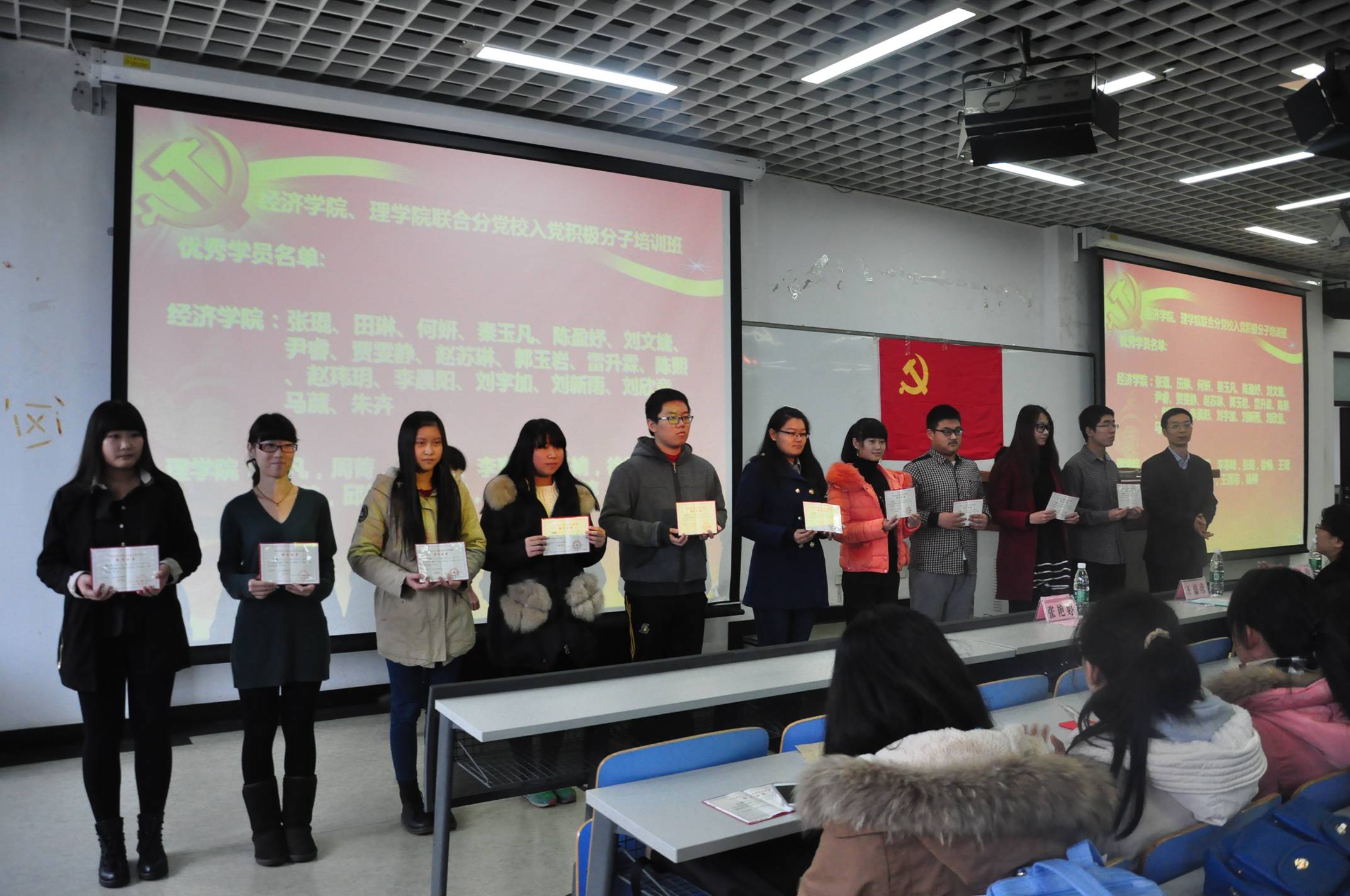 典禮的最后,張正平、祝鈞分別為本期黨校的優秀兼職輔導員、優秀學員頒發了榮譽證書。經濟學院、理學院聯合分黨校入黨積極分子培訓班在國際歌聲中圓滿落幕。